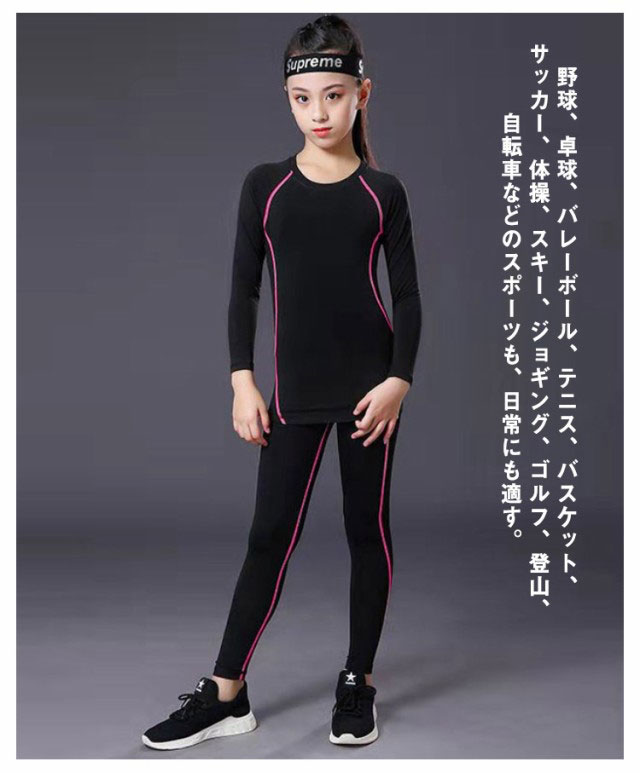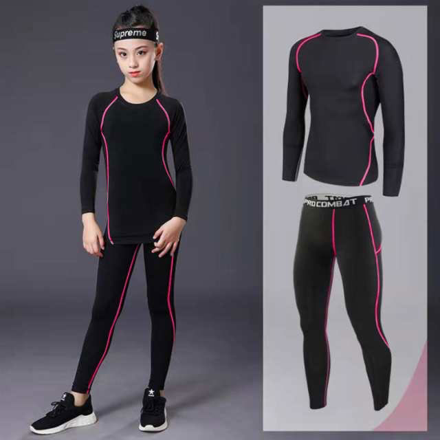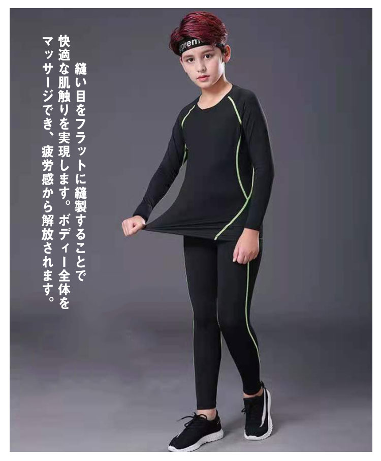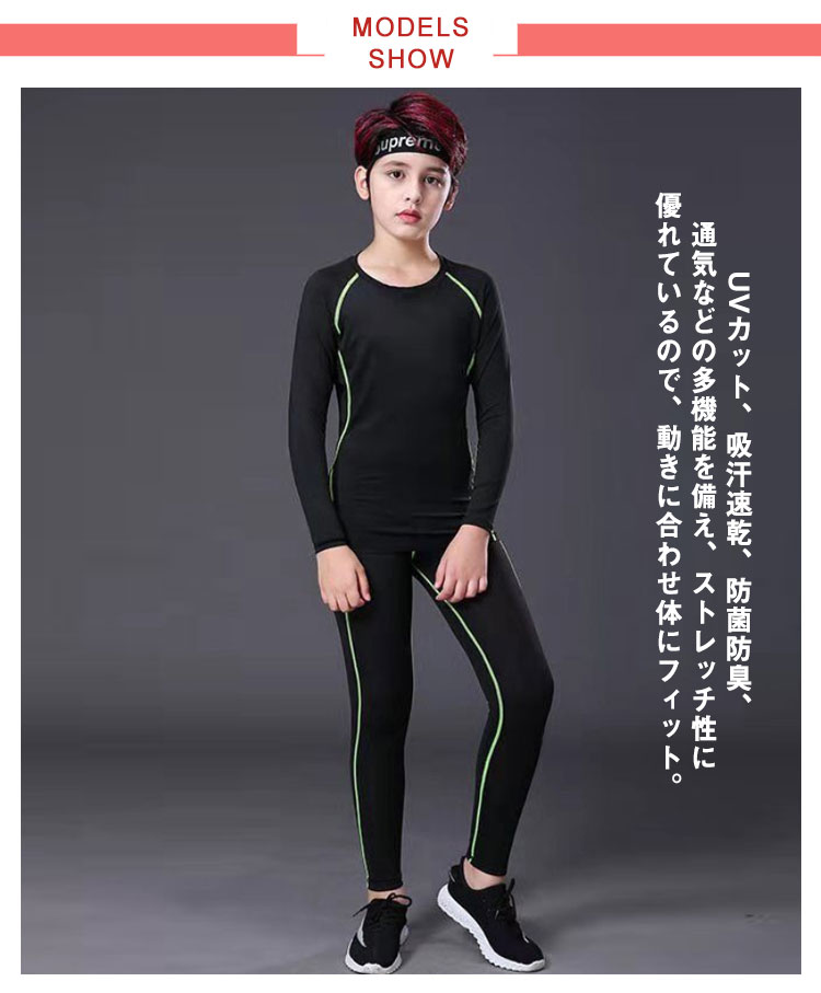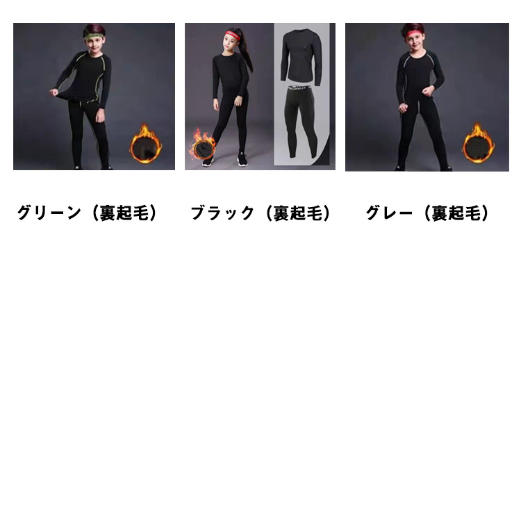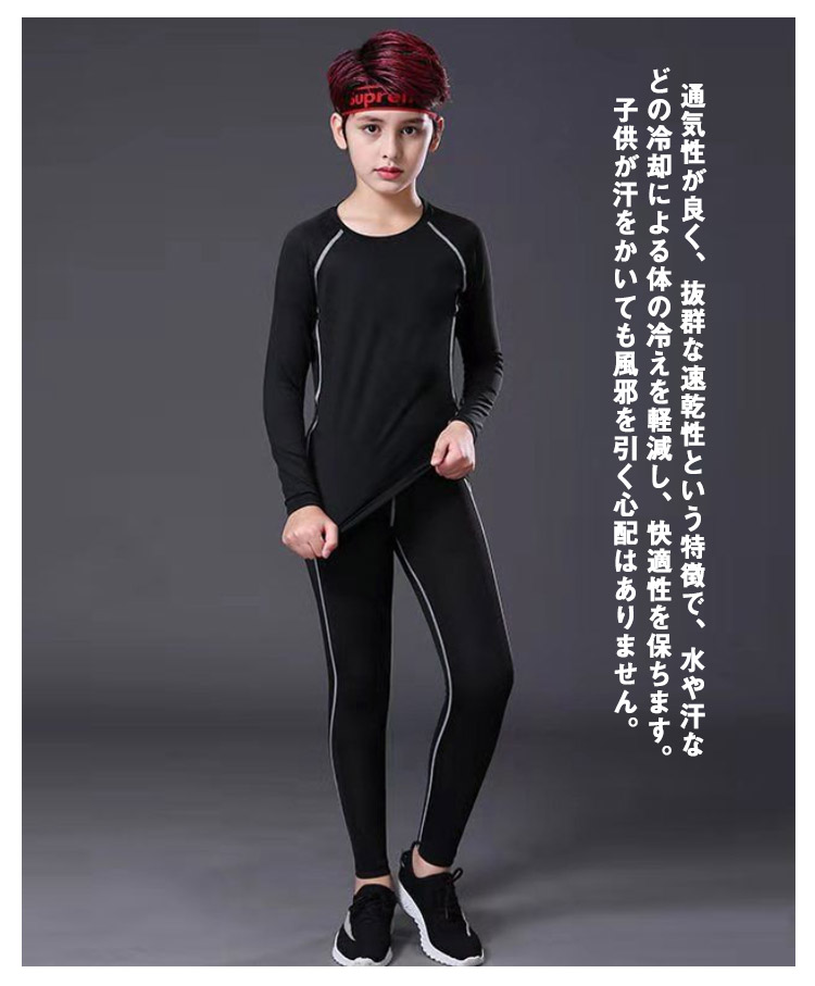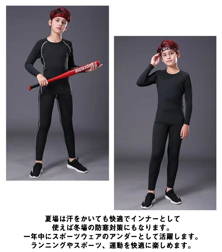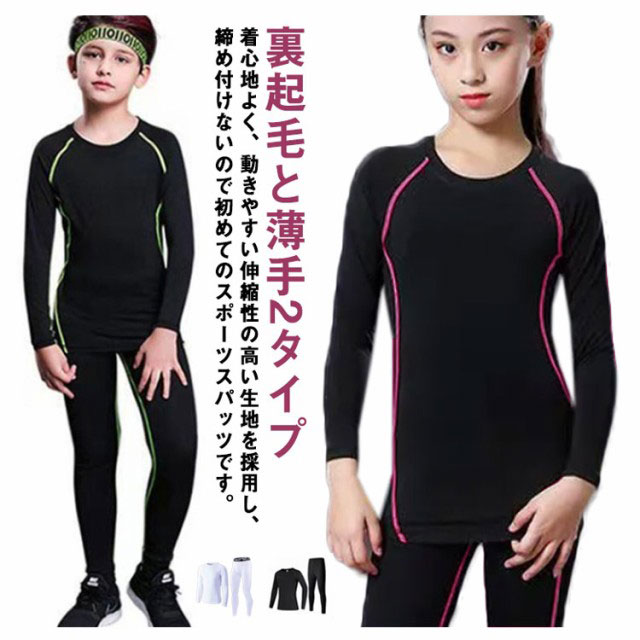 裏起毛と薄手2タイプ キッズ スポーツ アンダーウェア 上下セット コンプレッションウェア セットアップ 運動着 ストレッチ 吸汗 速乾 男の子 女の子 防寒 スポーツ インナーシャツ 長袖 サッカー 野球 ラグビー テニス バスケ ランニング 春 秋 冬