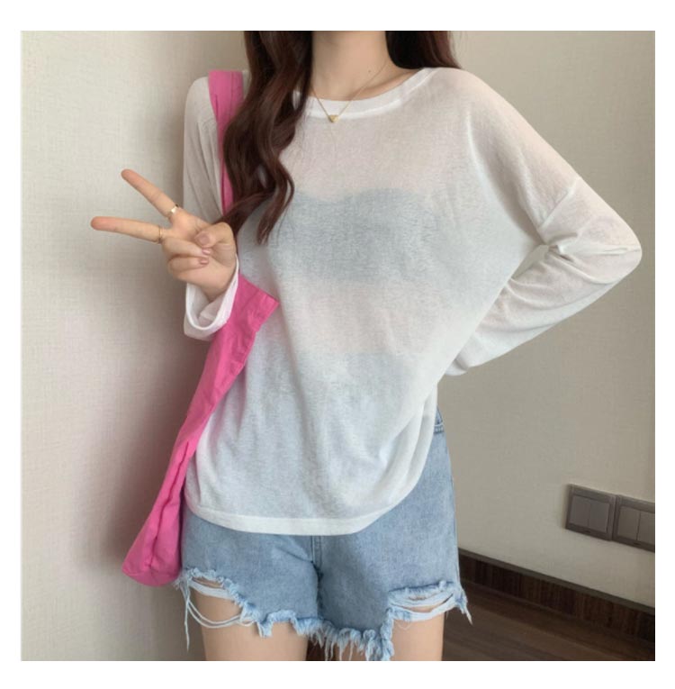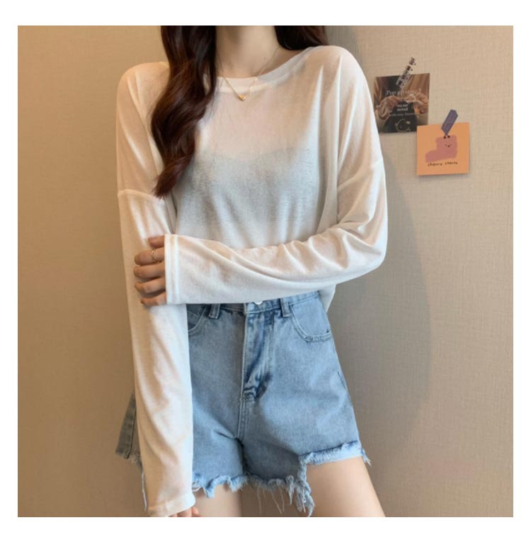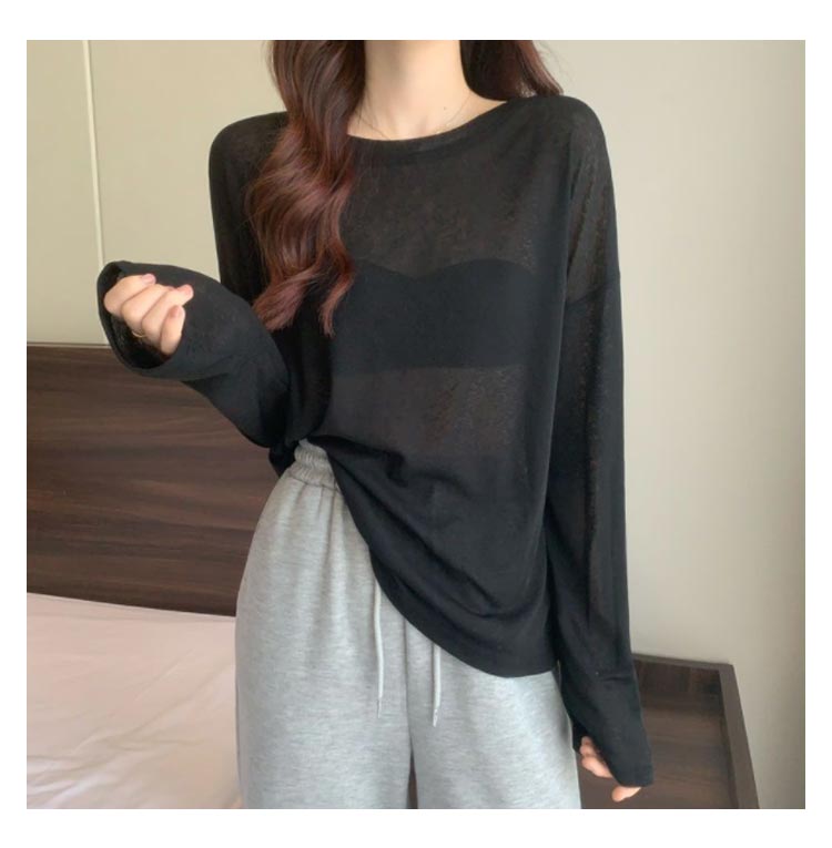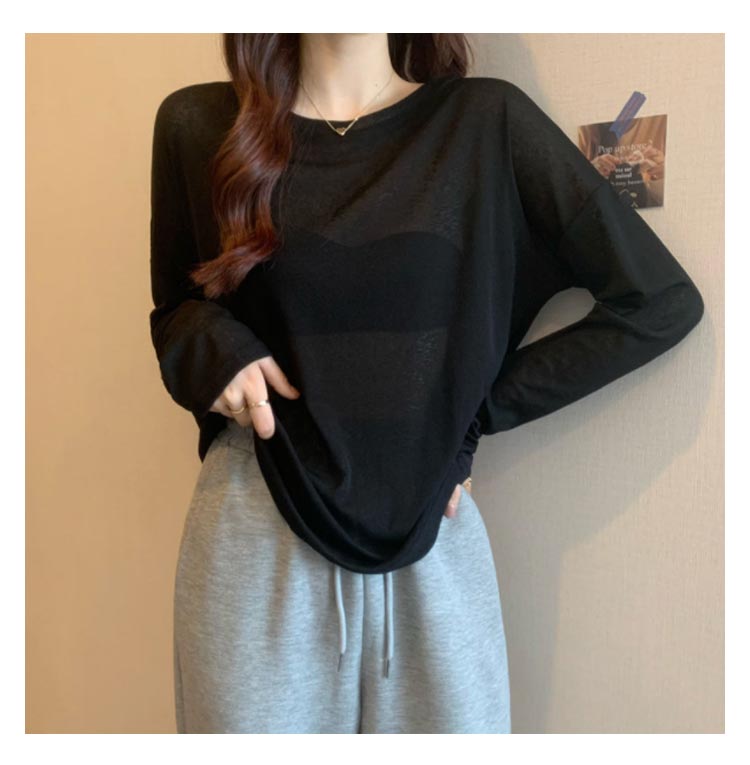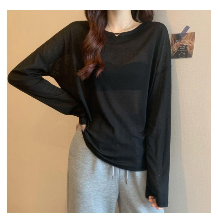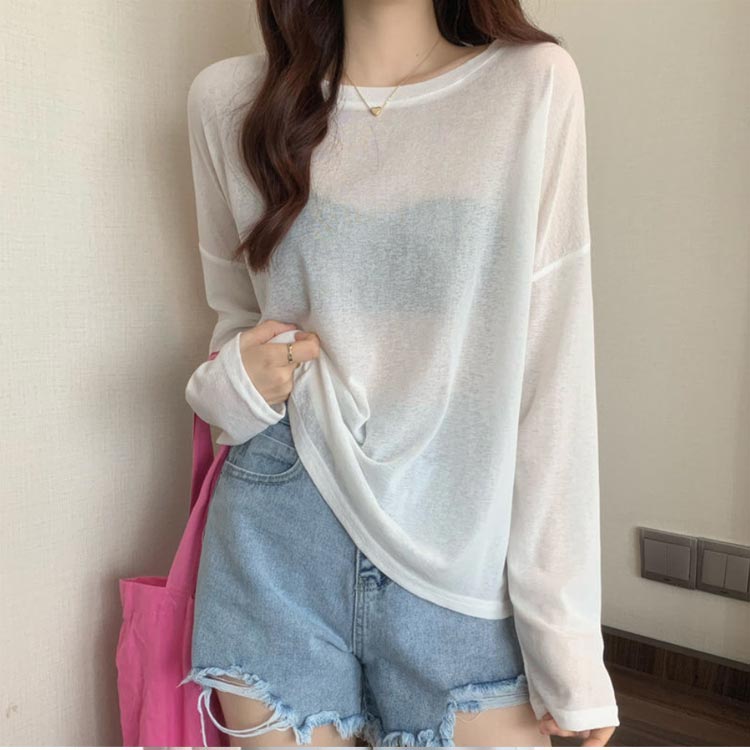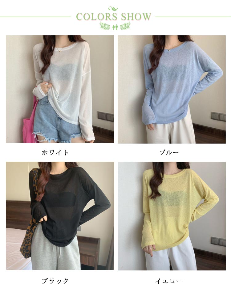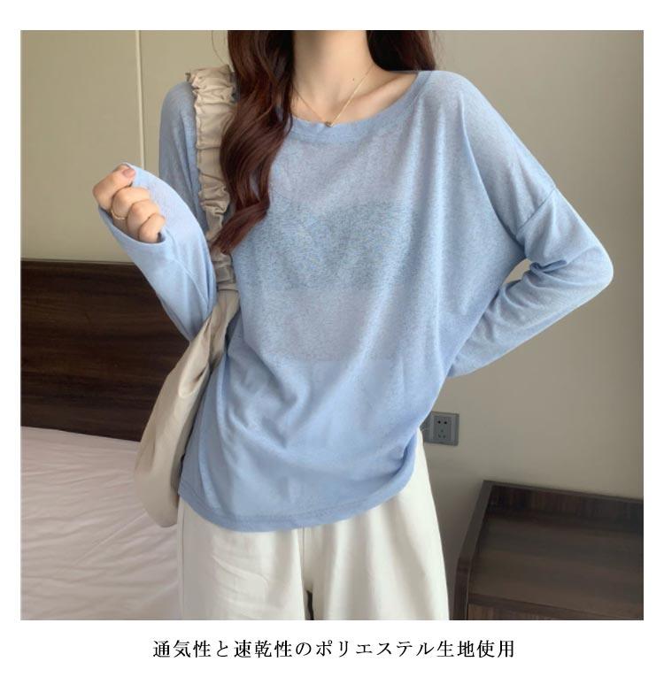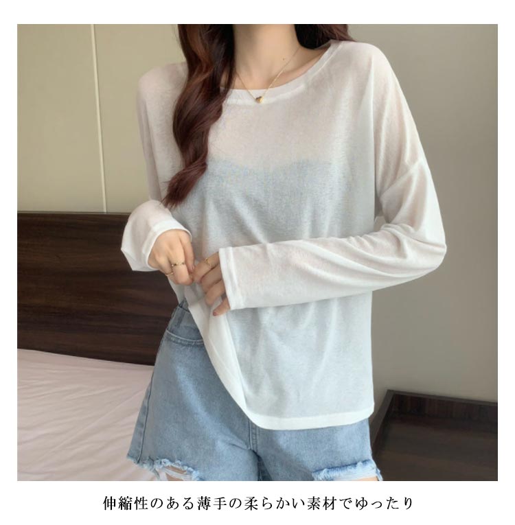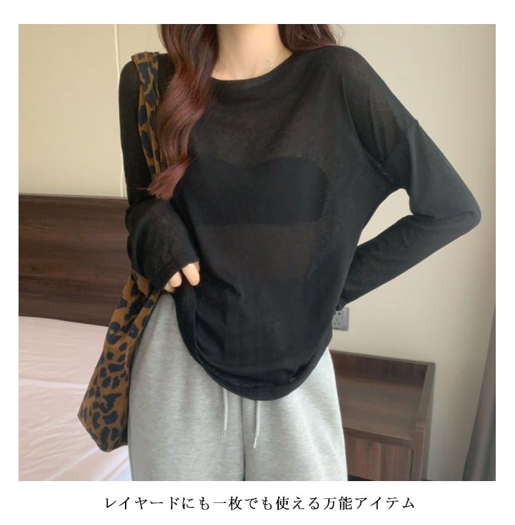 シアーロングスリーブTシャツ 長袖 シアートップス レディース 春 tシャツ 重ね着 レイヤード ロンT Uネック 長袖 トップス 送料無料 透け感 体型カバー 黒 白 ブラック ホワイト