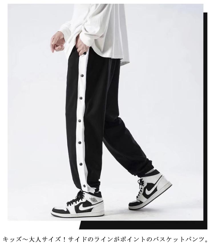 夏 ジュニア 大人 バスケットパンツ スナップボタン 男性 女性 メンズ レディース バスケットボールパンツ キッズ 裾ボタン サイドボタン サイドライン 長ズボン ロングパンツ ジャージ 下 男の子 女の子 バスパン バスケパンツ 送料無料