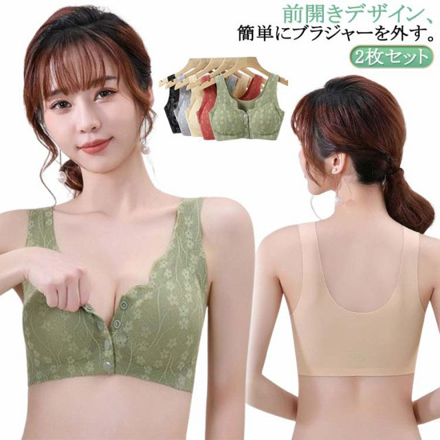 2枚セット!前開きデザイン、簡単にブラジャーを外す幅広ストラップ肩が痛くなりにくい締め付け感がなく優しい着心地着心地がよくお肌にもやさしい