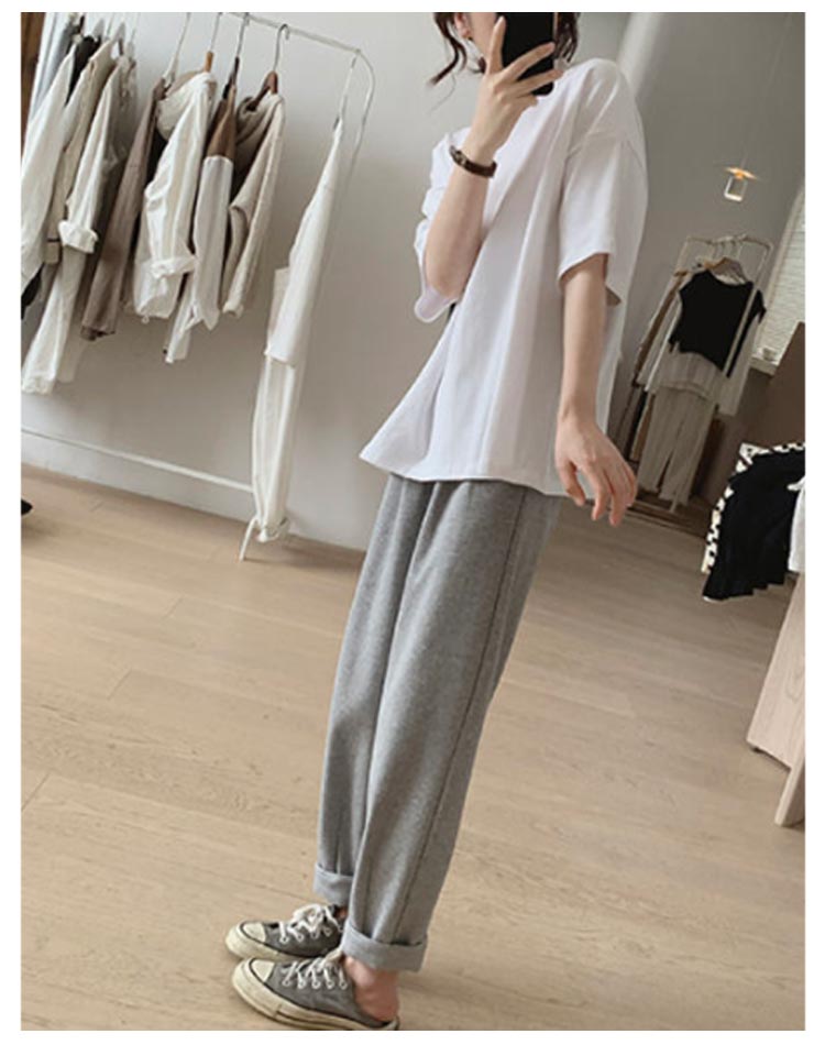 ゆったりとしたシルエットのプチハイネックTシャツ。綿100%ならではの肌触りが気持ちよく、薄手なので夏にピッタリ。シンプルだけどトレンドのドロップショルダーのデザインです。半袖より長めの袖が、一枚着るだけでカジュアルでオシャレな雰囲気を出します。毎日の着こなしにアクセントのあるコーディネートになります。触り心地のいい生地感なので、お部屋でのリラックスタイムにも。