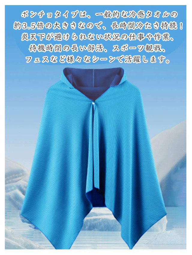 冷感ポンチョ 冷感ストール 冷感タオル 濡らす ひんやり クールポンチョ クールケープ クールパーカー 冷却 吸水 冷感 速乾 抗菌防臭 通気性 蒸れない 軽量 暑さ対策 熱中症対策 グッズ 運動会 スポーツ観戦 ジョギング プール 海 アウトドア 送料無料