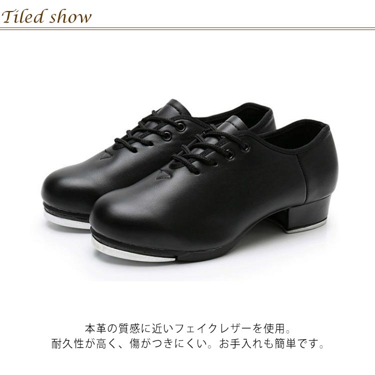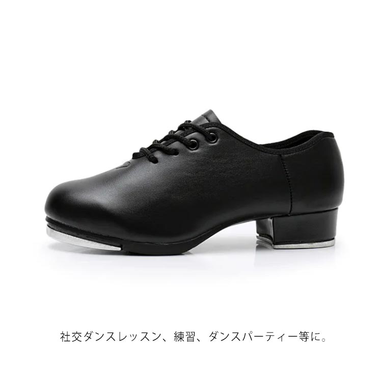 タップシューズ タップダンスシューズ レディース メンズ ジュニア ダンスシューズ タップ ダンス用品 初心者 標準 スタンダード 基本 タップダンスシューズ 練習 レッスン くつ 婦人 紳士 靴 タップス 合皮 無地 ブラック