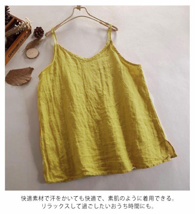 全5色×4サイズ リネンキャミソール レディース インナー トップス キャミソール 綿麻トップス 綿 麻 インナー レイヤード 涼しい さらさら リラックス 吸湿 通気性 快適 下着 肌着 Vネック シンプル 無地 ナチュラル きれいめ 春 夏 秋