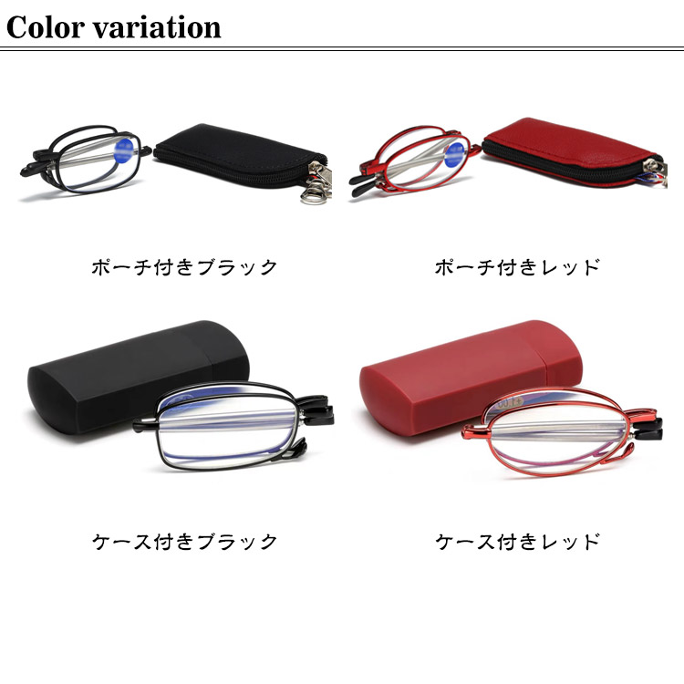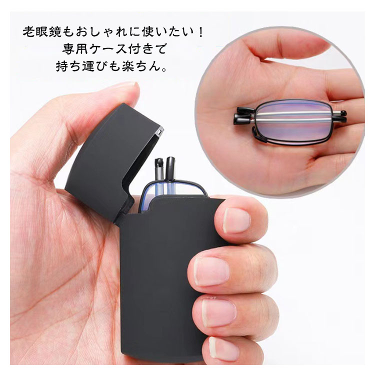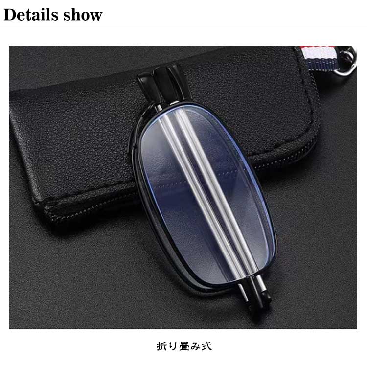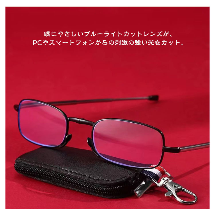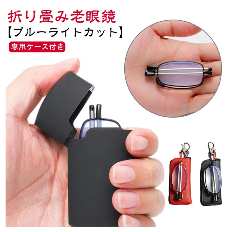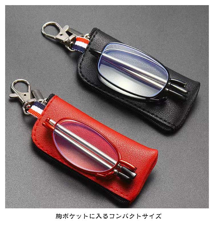 老眼鏡 折り畳み 収納ケース付き おしゃれ ブルーライトカット レディース メンズ 折りたたみ式 軽量 めがね 収納ポーチ付き 度付き シニアグラス リーディンググラス コンパクト キーホルダー 携帯用 スマホ眼鏡 男性用 女性用