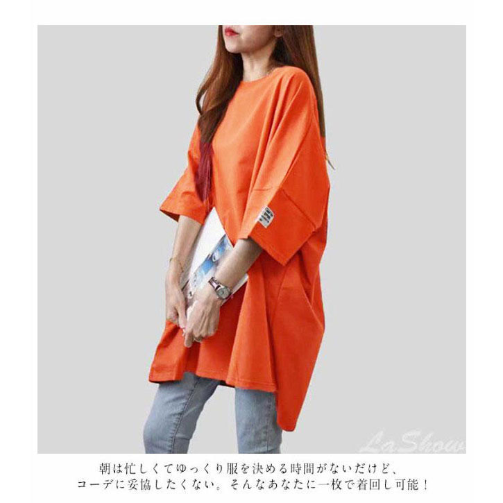 半袖 ゆったり おしゃれ レディース 大きいサイズ Tシャツ 春夏秋 ロングTシャツ カットソー ビッグサイズ チュニック 無地 プルオーバー シンプル レディース 体型カバー ママ 母 20代 30代