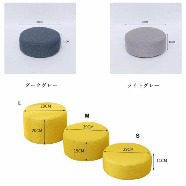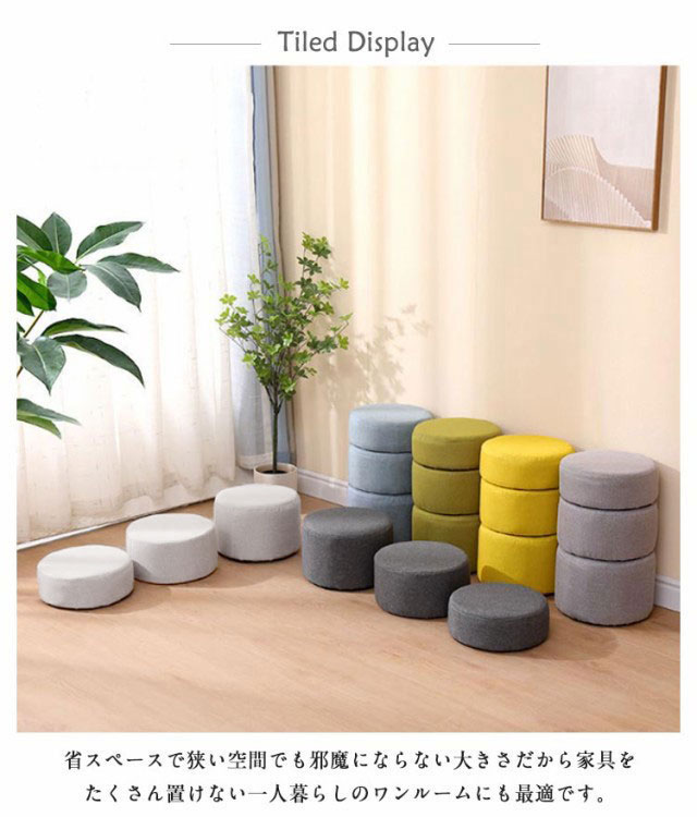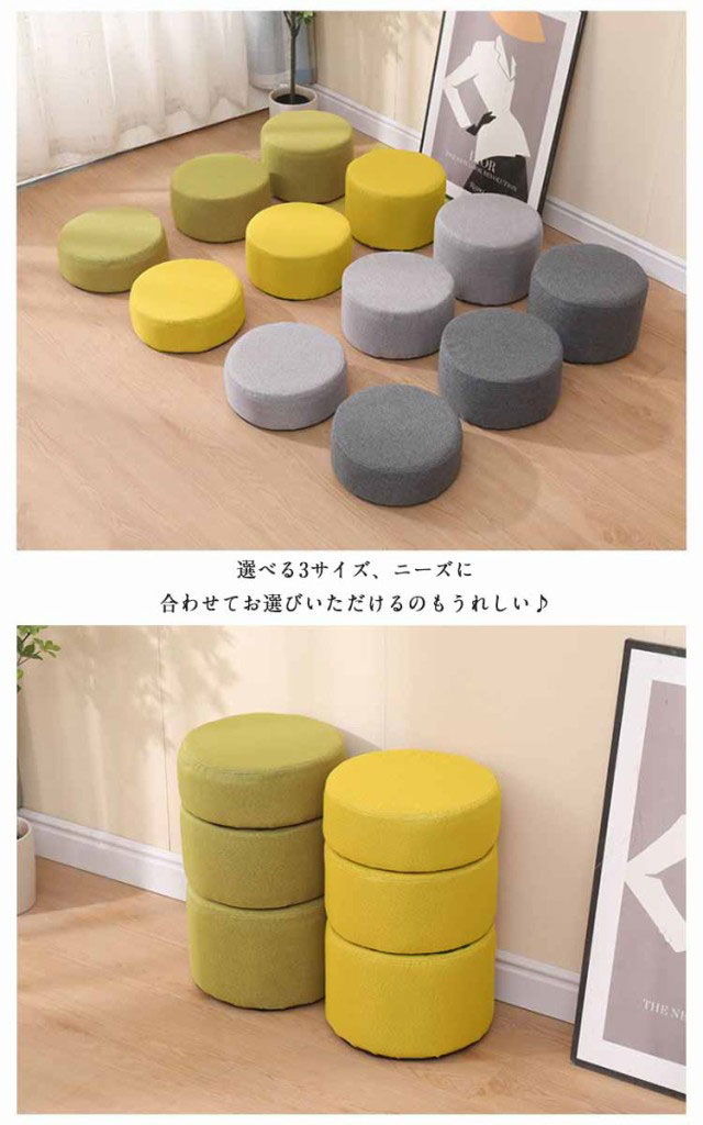 | リビングや寝室、玄関にちょこんと置いて使えるスツール 省スペースで狭い空間でも邪魔にならない大きさだから家具をたくさん置けない一人暮らしのワンルームにも最適です。 フォルムの多機能スツールは弾力があってふかふかの座り心地。 通気性のよいサラサラ素材でオールシーズンお使いいただけます。 シンプル?無地のデザインはインテリアを邪魔になりません。 選べる3サイズ、ニーズに合わせてお選びいただけるのもうれしい? | |