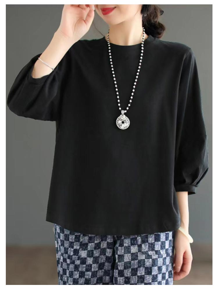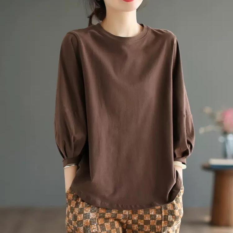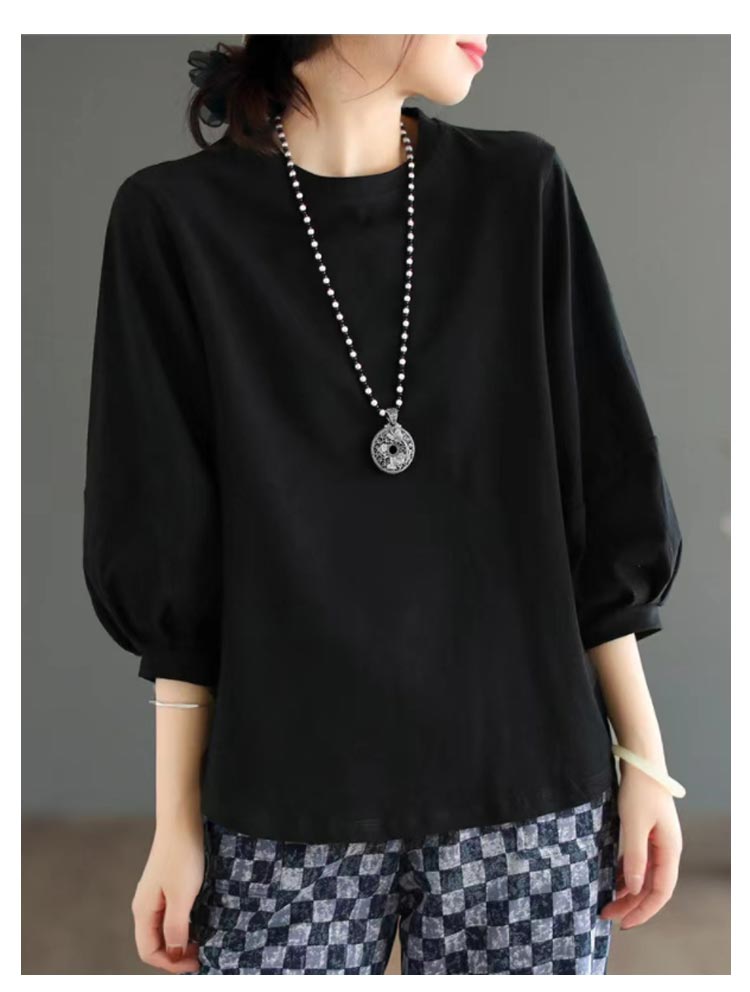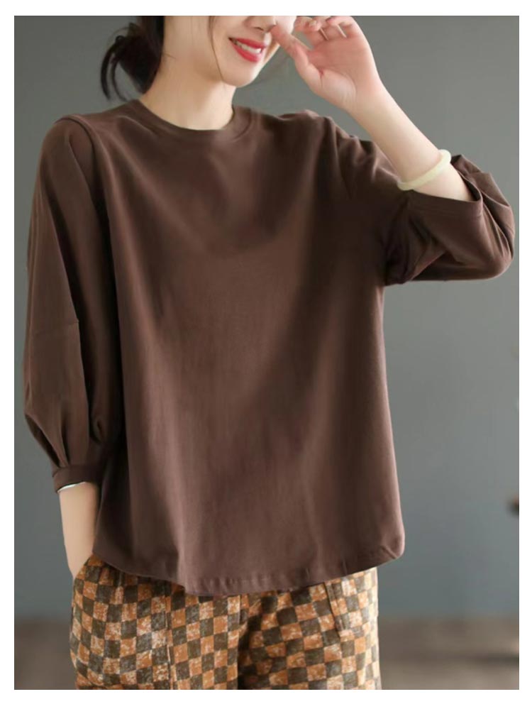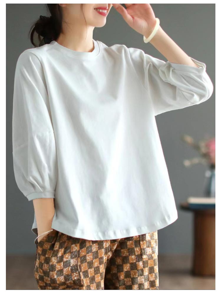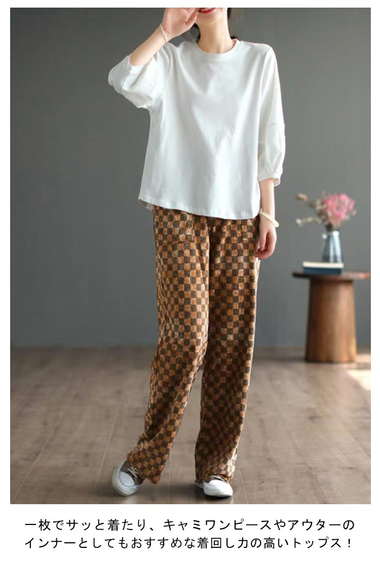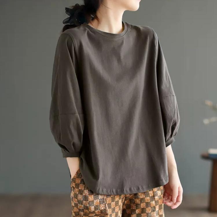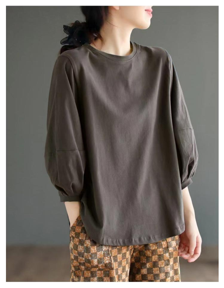 プルオーバー 7分袖 レディース カットソー トップス Tシャツ パフ袖 ボリュームスリーブ ぽわん袖 七分袖 クルーネック 無地 シンプル ゆったり 長袖tシャツ 春 夏 秋 カジュアル 大きいサイズ 送料無料