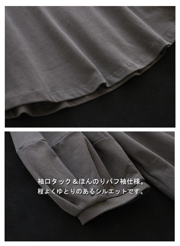 | シンプルで快適な着心地がデイリーに最適なプルオーバー。 袖口タック&ほんのりパフ袖仕様。程よくゆとりのあるシルエットです。 さらっとした肌心地の素材で、軽やかかつ快適な着心地に仕上げた1枚です。 一枚でサッと着たり、キャミワンピースやアウターのインナーとしてもおすすめな着回し力の高いトップス! | |
