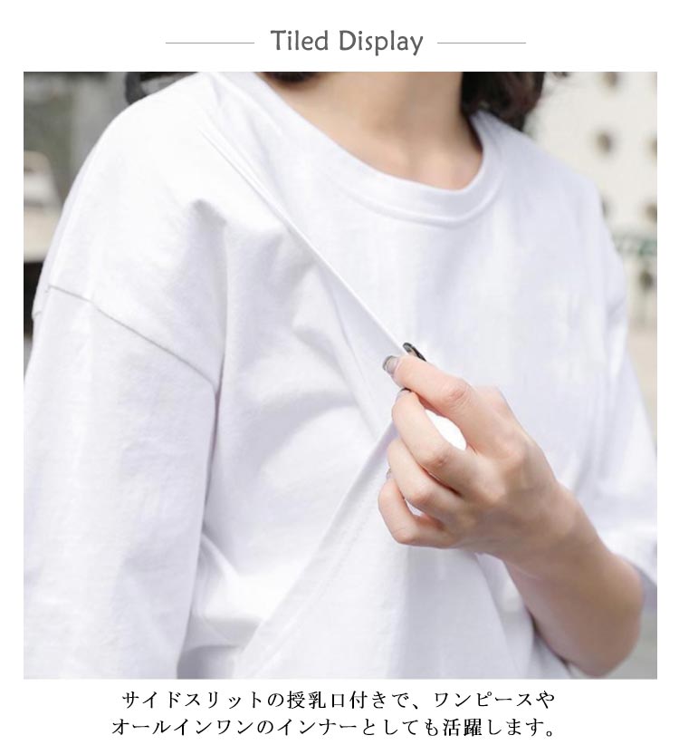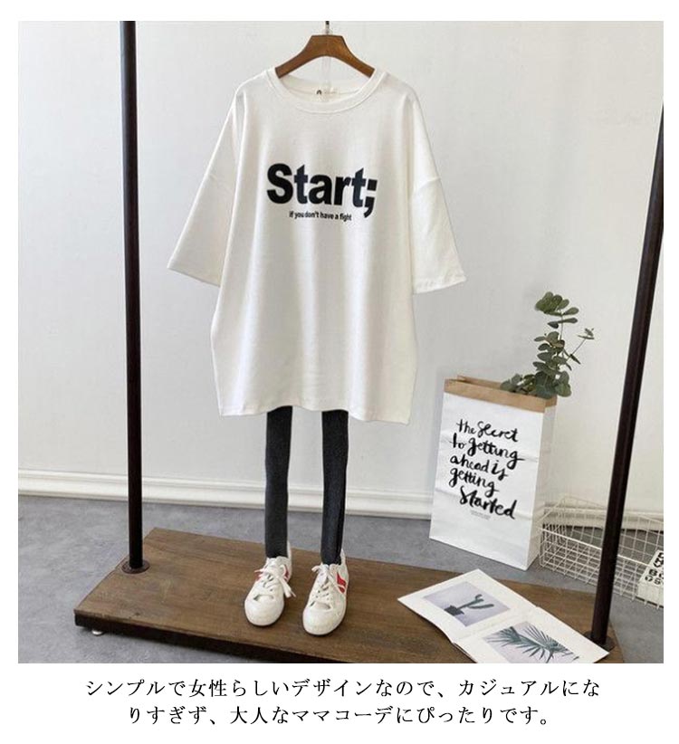 授乳服 Tシャツ 半袖 おしゃれ ロゴT クルーネック インナー ロゴTシャツ トップス 授乳しやすい 安心 便利 ティーシャツ チュニック 丸首 授乳服 ロング丈 出産準備 マタニティ カットソー 妊婦服 洗濯可 送料無料