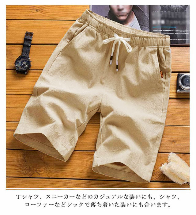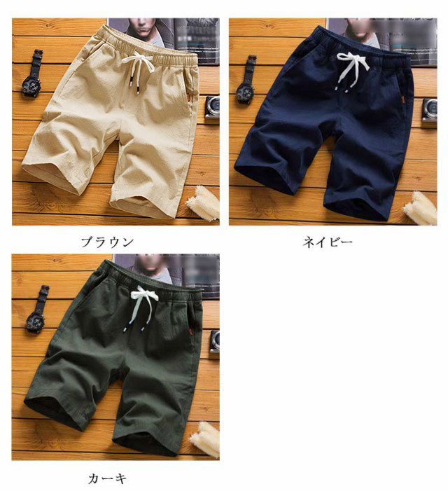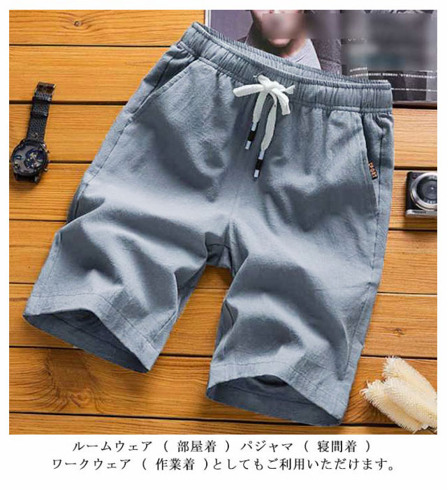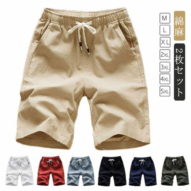 【2枚組】メンズ ショートパンツ 綿 麻 ゆったり メンズ 短パン タンパン ゴルフ ウエストゴム 紐付き 5分丈 夏用 大きいサイズ ハーフパンツ カジュアル ショーパン リネン 麻 半ズボン 涼しい 薄手 部屋着 ルームウェア おしゃれ