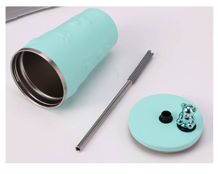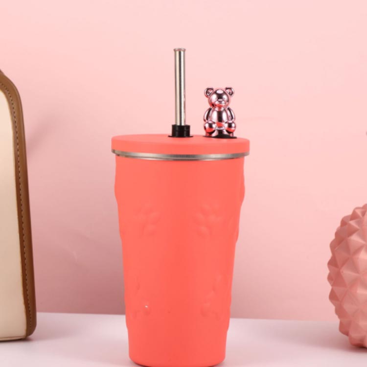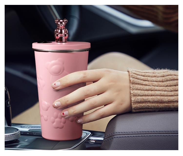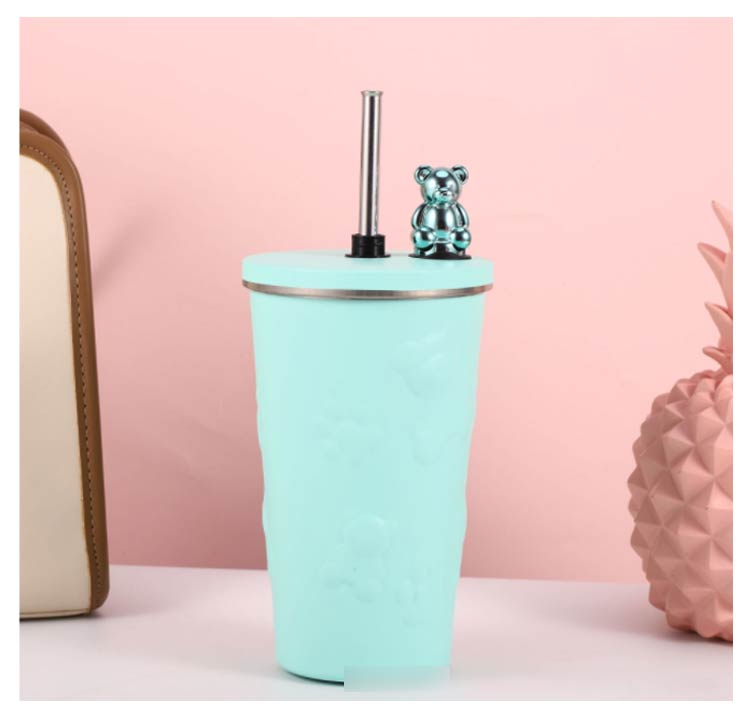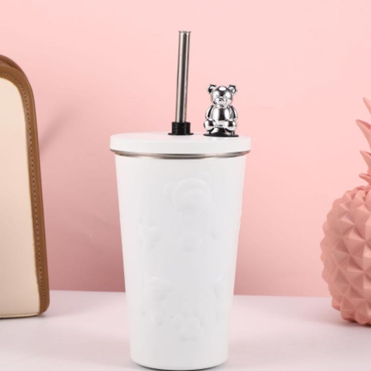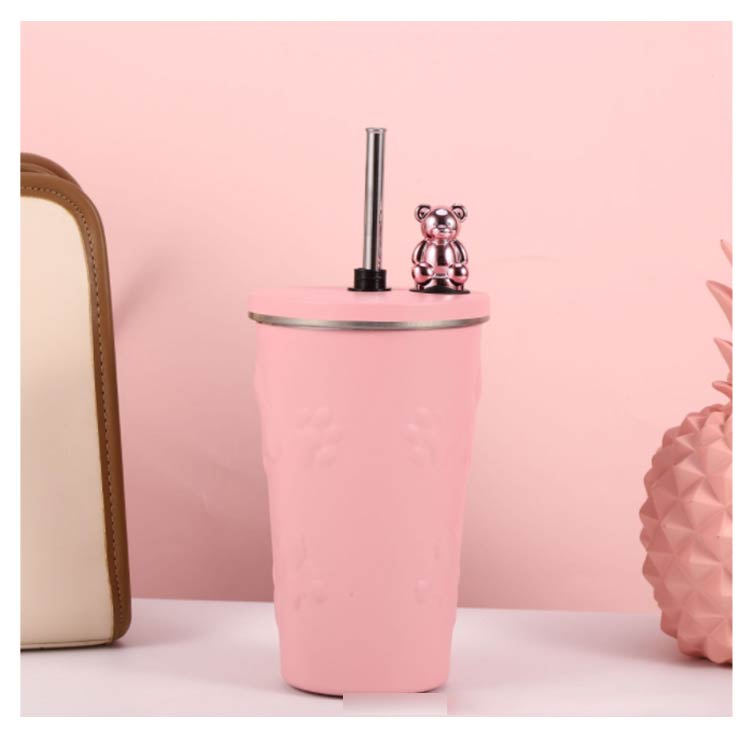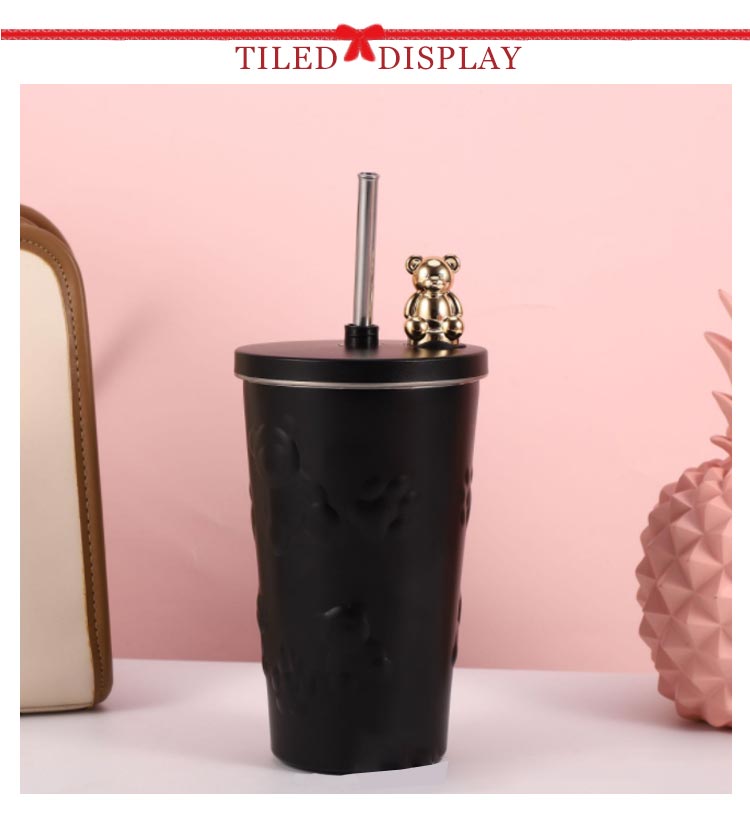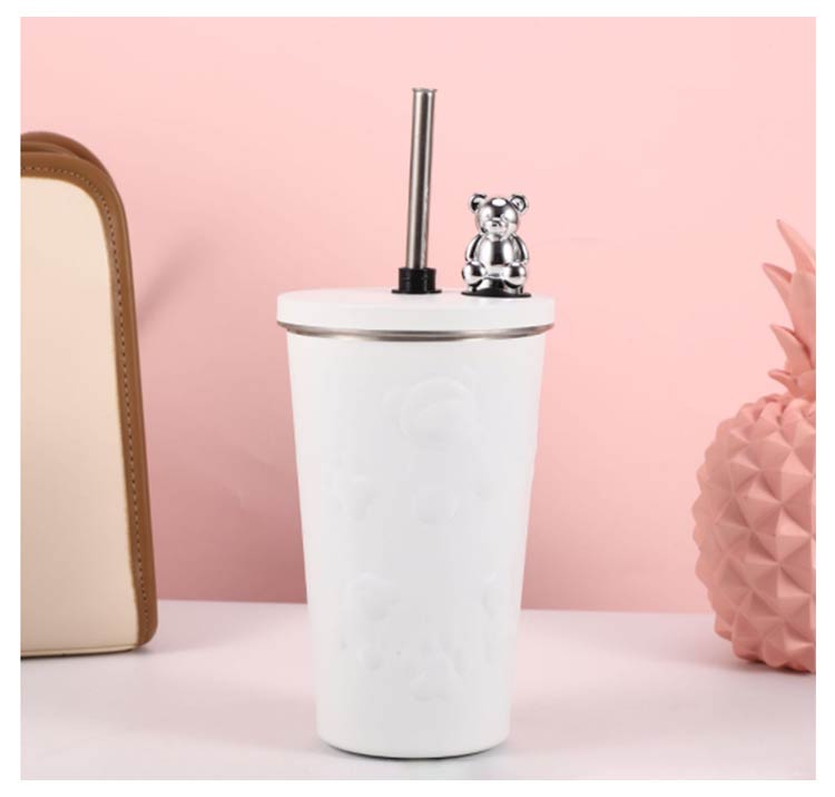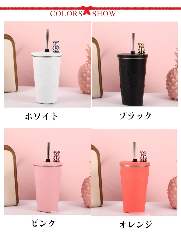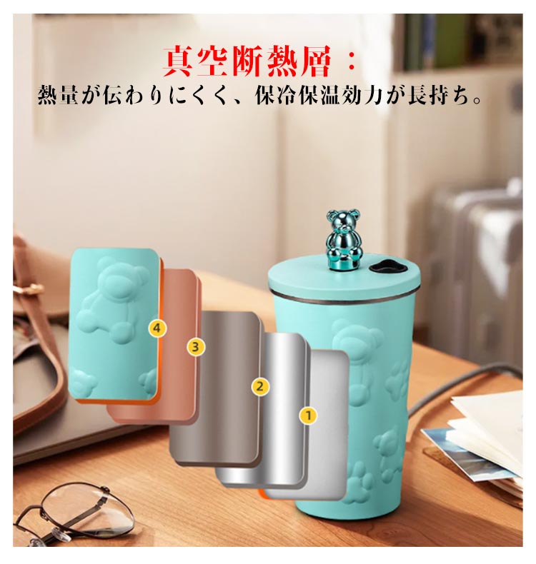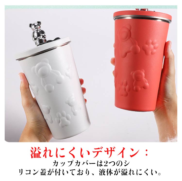 タンブラー ストロー付き 蓋付き くま 熊 600ml 大容量 保温 保冷 水筒 二重構造 真空断熱 ステンレス マグカップ 結露しない スクリュー こぼれない 持ち運び コーヒーカップ かわいい 送料無料 通勤 通学
