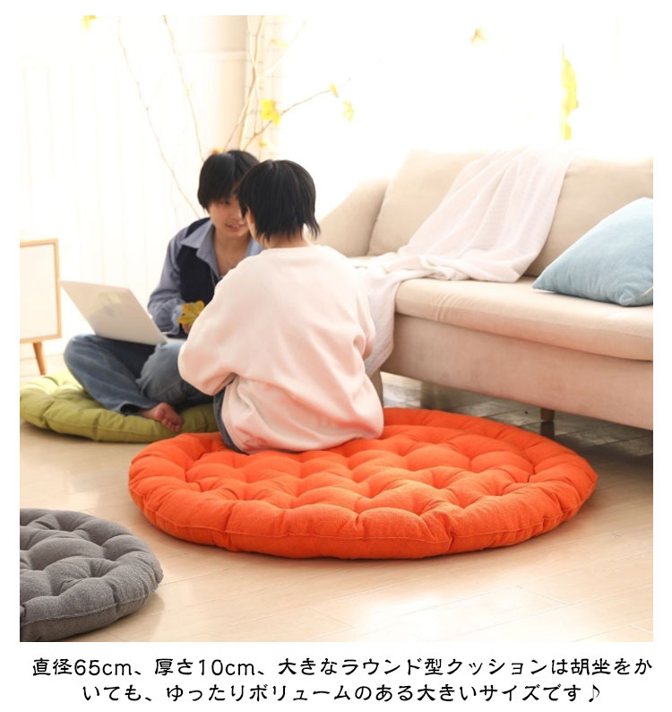 座布団 丸型 クッション 直径65cm 大きい ラウンドクッション 丸座布団 円形 フロアクッション おしゃれ 北欧 綿麻 ふわふわ 厚い 滑り止め 大きいサイズ かわいい 無地 インテリア 雑貨 お盆用 来客用 在宅 ギフト プレゼント 送料無料