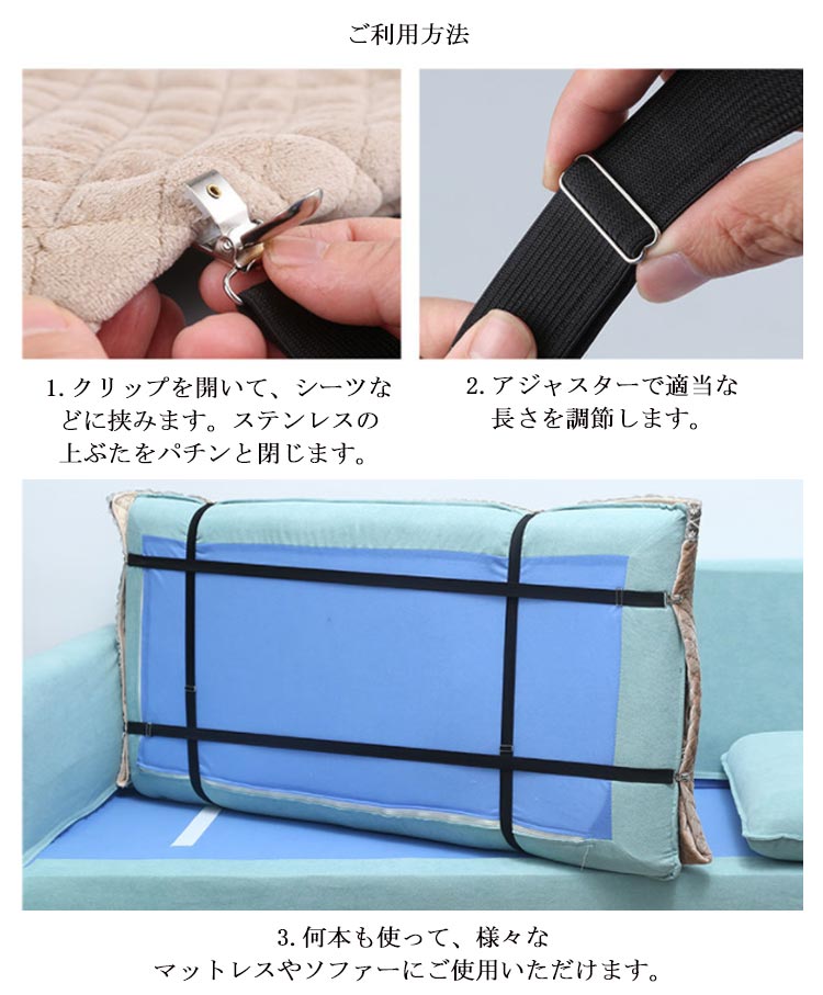 ソファカバー用 サスペンダー 4本セット マルチ カバー止め ずれ防止 シーツクリップ ずれ止め ソファー シーツ カバー固定 クリップ スキットバンド ベルト ゴムバンド 伸縮 長さ調節 ソファー用 調整 家庭用 送料無料