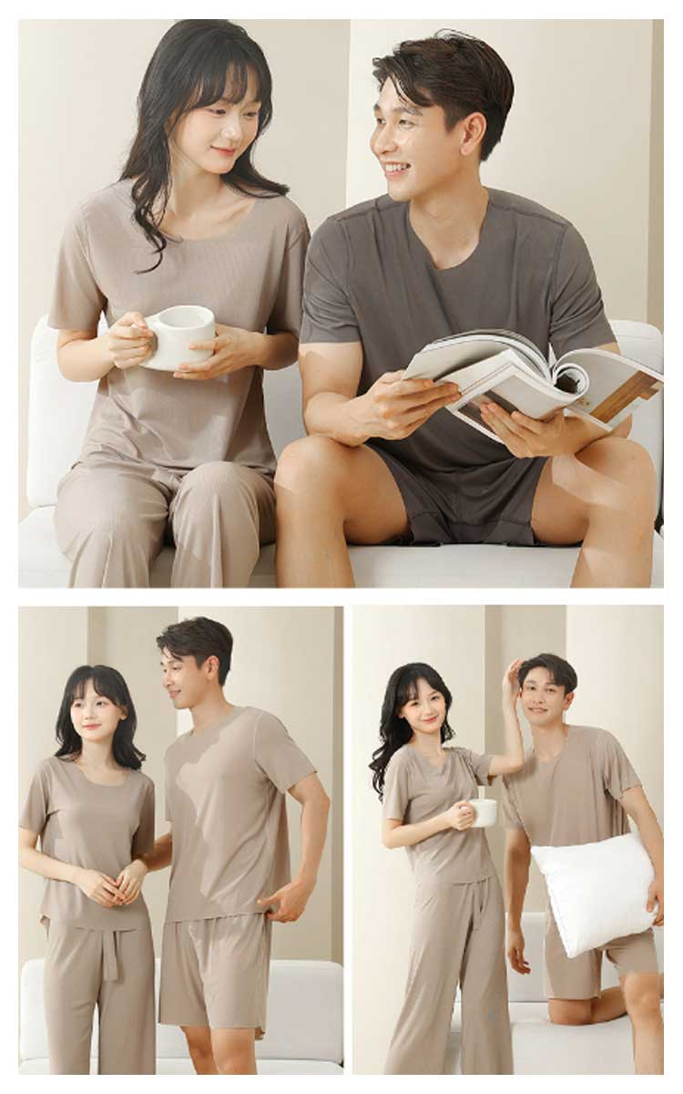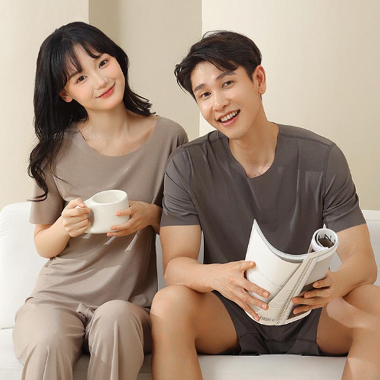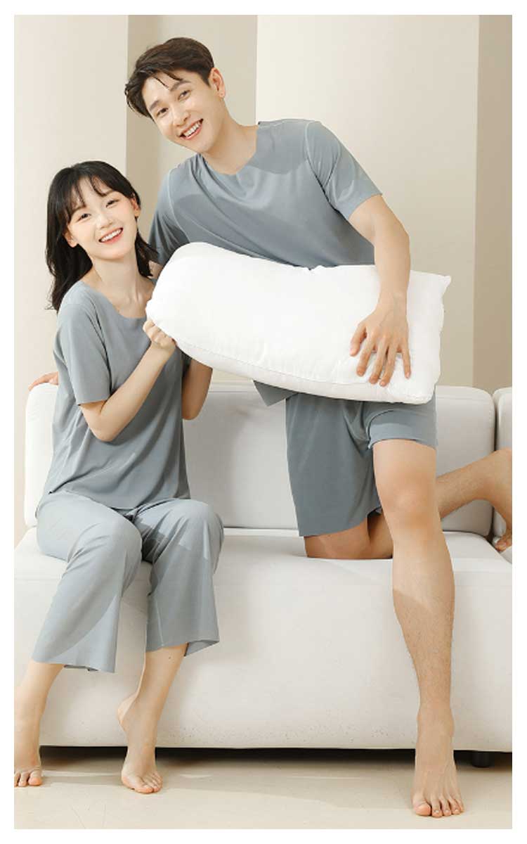 恋人二人で一緒に着て、ラブラブ感が溢れている♪肌触りが気持ちいい半袖カップルパジャマ丁寧かつ丈夫であるため、長期間やさしい着心地を楽しめます♪楽チンな着心地でお家でのリラックスタイムにオススメです♪