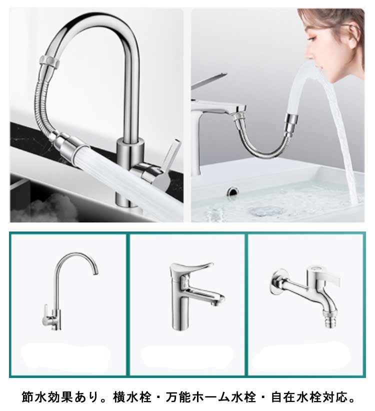自在パイプ 蛇口ホース 蛇口エクステンダー 360度回転 蛇口 シャワーホース ステンレス製 加圧節水 はね防止 蛇口 延長 ホース フレキシブル 工事不要 簡単 キッチン シンク 台所 庭 自在水栓 角度 自在 キープ 万能ホーム 便利 送料無料