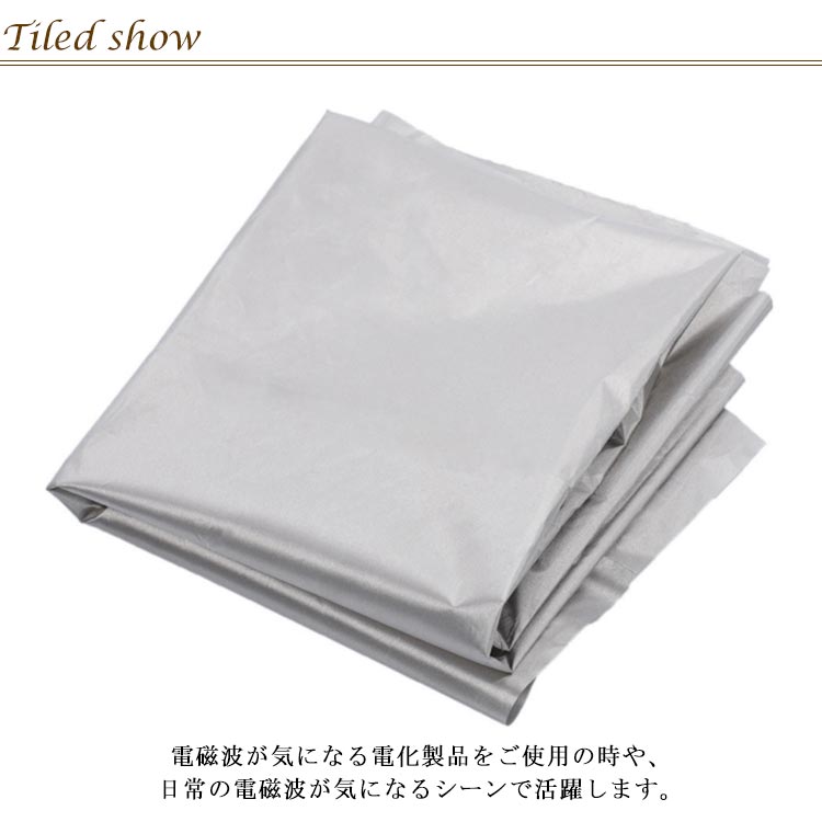 電磁波から体を守る!「EMF(電磁場)防護布 」を体に巻いたり、掛けることで、電磁波から体を守ります。電磁波が気になる電化製品をご使用の時や、日常の電磁波が気になるシーンで活躍します。ノートパソコンや、タブレットの使用時!「EMF(電磁場)防護布」をブランケットとして体に掛けるだけ。妊婦の方は、お腹を守ることができます。男性は、前立腺を守ることができます。家中の電磁波ガードとして!プラスターボードの裏や床の下敷きにも使用可能です。また、ベッドマットレスとして使用すると、地面からの電磁波の影響を減少できます。その他、ベビーベッドやベビーカーの下敷きとしてもおすすめ。「EMF(電磁場)防護布」は、必要なサイズに応じて切ることができて便利!財布に入れてクレジットカードのデータ侵害を防げます。また、データ侵害が気になるスマートフォンやパスポートにも巻いて保護。「EMF(電磁場)防護布」1枚で、生活の様々なシーンで使うことができます。「EMF(電磁場)防護布」は、薄くて柔軟性に優れています。110×100cmの大判サイズなので、ブランケットや下敷きなど、使い方は自由自在!