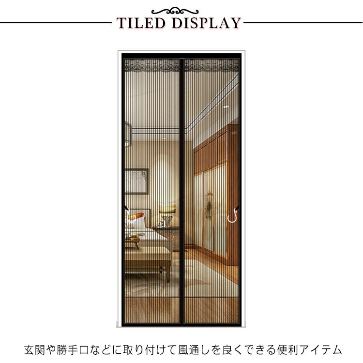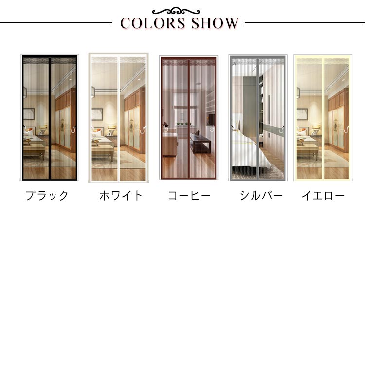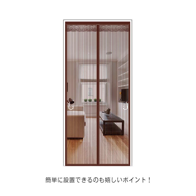 | 【玄関網戸 高さ190/195/200/205/210/215/220/230/240cm 幅80/85/90cm】 玄関や勝手口などに取り付けて風通しを良くできる便利アイテム マグネットタイプで自然に閉じる網戸カーテン 強力なにより、素早く自動で閉まるので、荷物で両手がふさがっている時でも便利なマグネットカーテンです。子供やペットでも簡単に通れます。 一周全てマジックテープ式です、カーテンが丈夫に固定されます。 網戸の外側に設置して虫を二重に防止し、夏でも風通しを快適に、省エネ効果も期待できます。 簡単に設置できるのも嬉しいポイント! | |