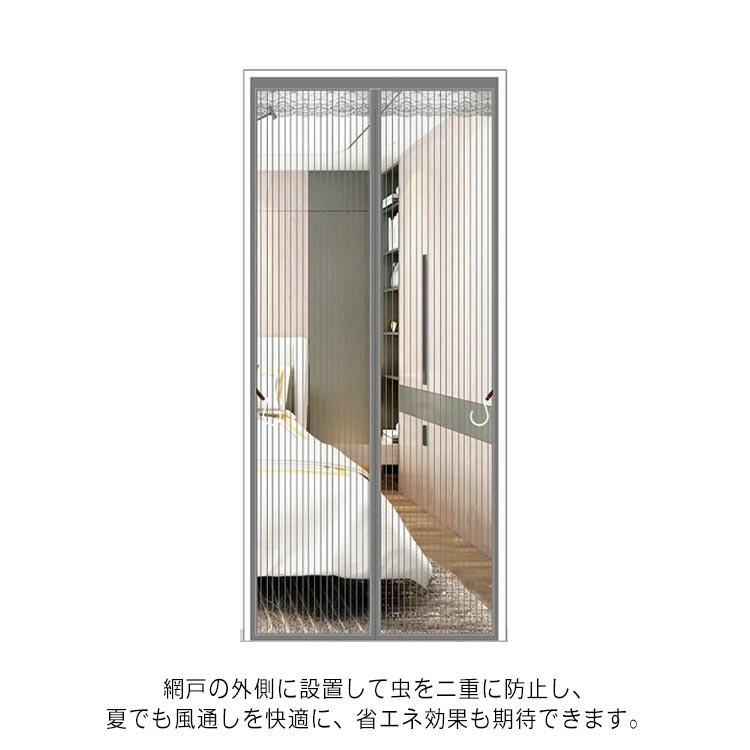 蚊帳カーテン 玄関網戸 高さ190/195/200/205/210/215/220/230/240cm 幅80/85/90cm 虫対策 カーテン式 簡単 マグネット式 取り付け ドア用網 マンション 賃貸 暑さ対策 アミ戸カーテン