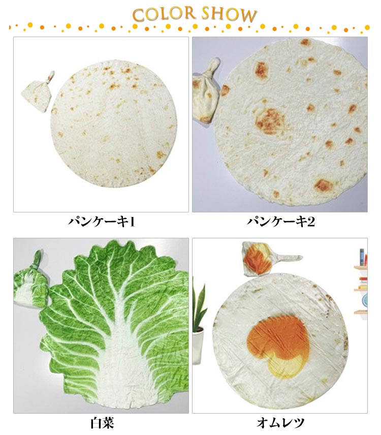 | 色 | パンケーキ1 パンケーキ2 白菜 オムレツ ステーキ スイカ オレンジ |