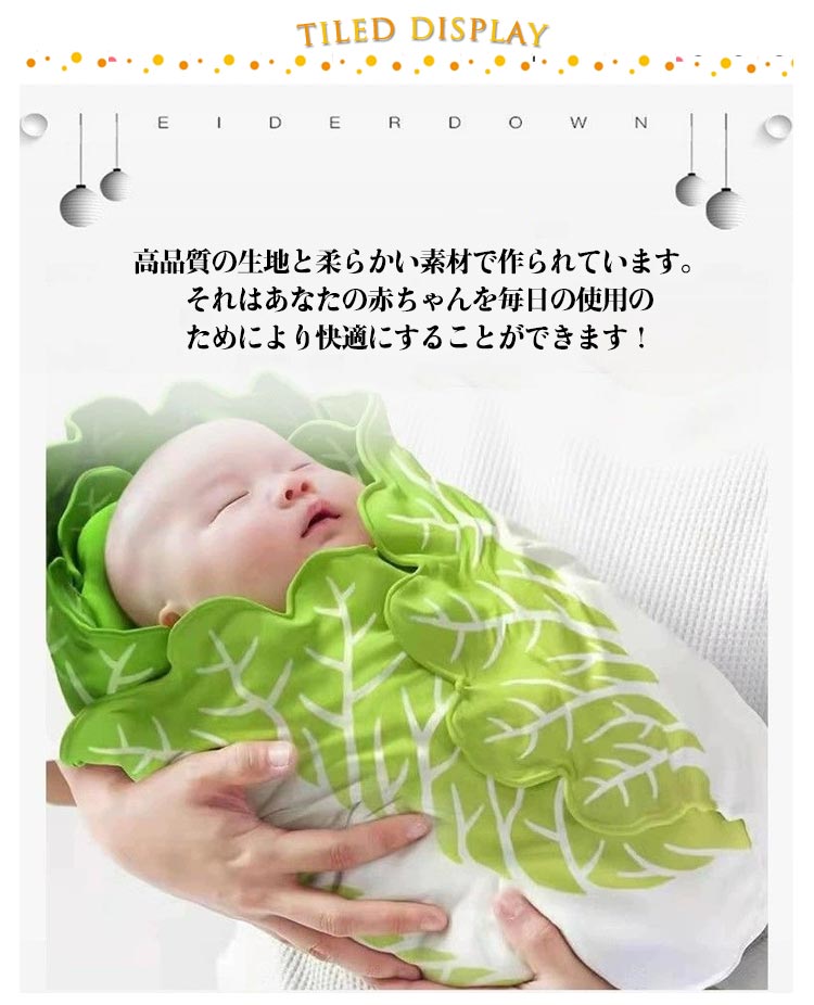 | 全7種類!ベビー用おくるみです。お揃いの帽子も付いてるので可愛さ倍増! 高品質の生地と柔らかい素材で作られています。それはあなたの赤ちゃんを毎日の使用のためにより快適にすることができます! おくるみに包まれることで、お母さんの体内に近い環境となり、赤ちゃんに安心を与えますので、ぐっすりと眠りにつきます。 前開きタイプです。しっかり防寒できるだけではなく、片手で着脱することも可能です。足が分かれていて動きやすいですので、赤ちゃんはじたばた動いても大丈夫です。着脱はとても簡単です。 柔らかいぬいぐるみおくるみ毛布は、ベビーカーの毛布、保育園、多目的毛布、寝袋としてお使いいただけますので、お子様の安全と暖かさを実感できます。 プレイマット、ベビーカーの日よけカバー、ベビーバスタオル、タオルケット、ガーゼケット、授乳ケープ、おむつ替えシーツなどいろいろな場面で多機能にお使い頂けます。 白菜の見た目、とても可愛いですので、出産祝いや出産準備のプレゼントにおすすめです。 | |