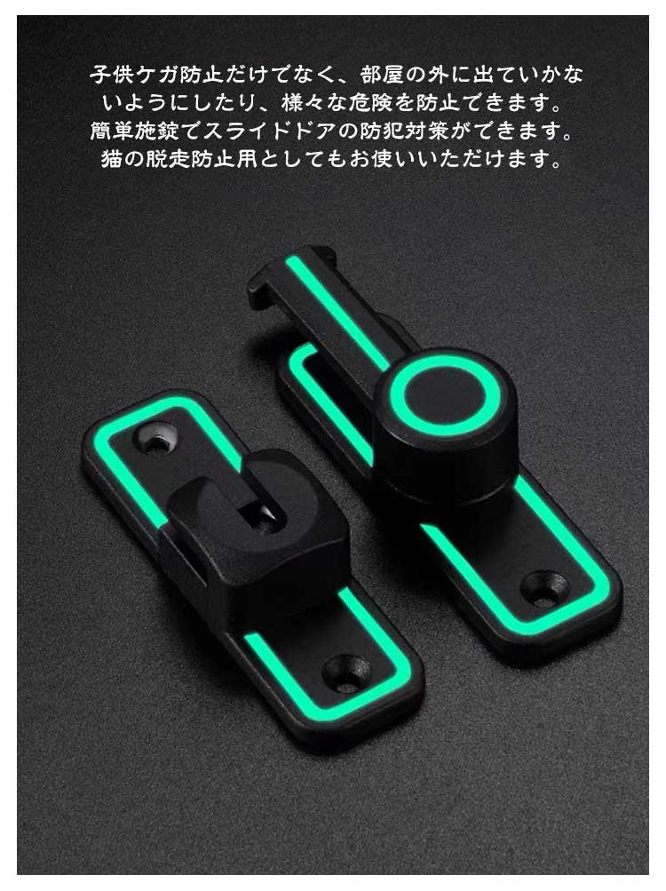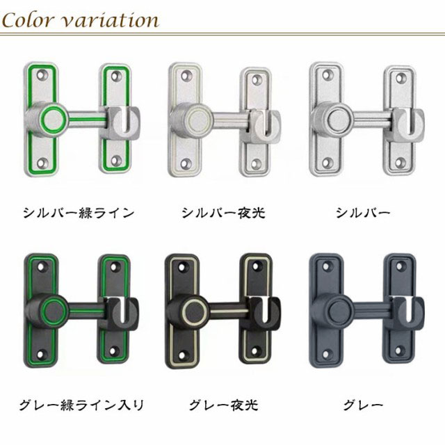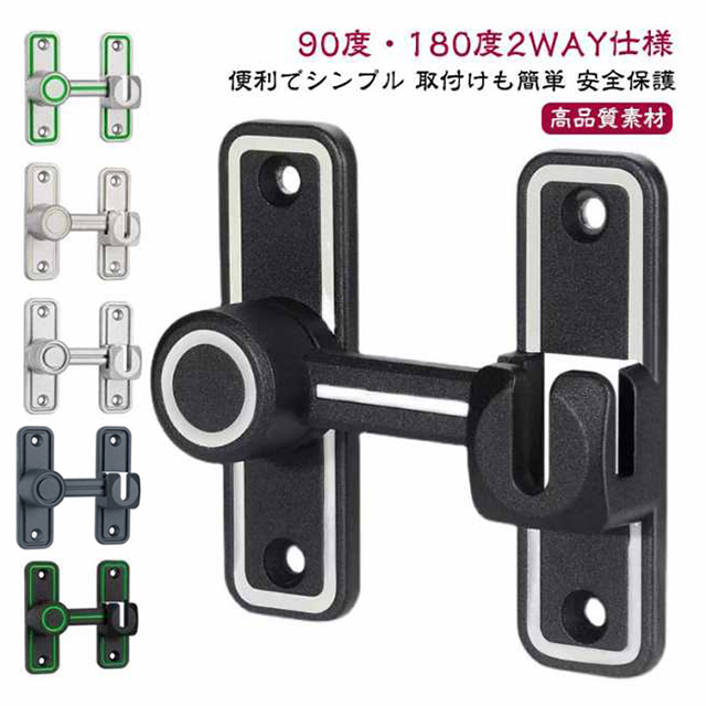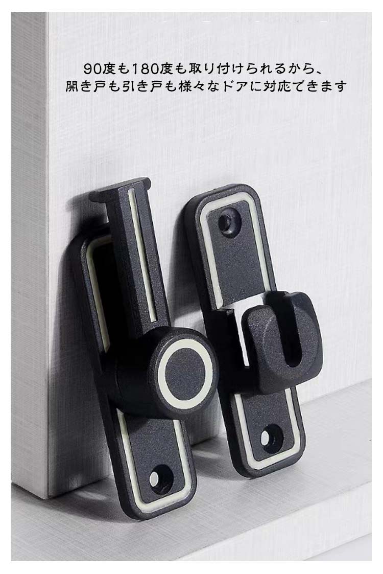 引き戸 鍵 後付け ドアロック 90度/180度 兼用 取り付け簡単 穴あけ不要 ドアバックル 亜鉛合金 ドア留め金ロック 後付け 回転式 フリップラッチロック 夜光 スライディングドア 引き戸 鍵 ロック 防犯 部屋 窓 玄関用