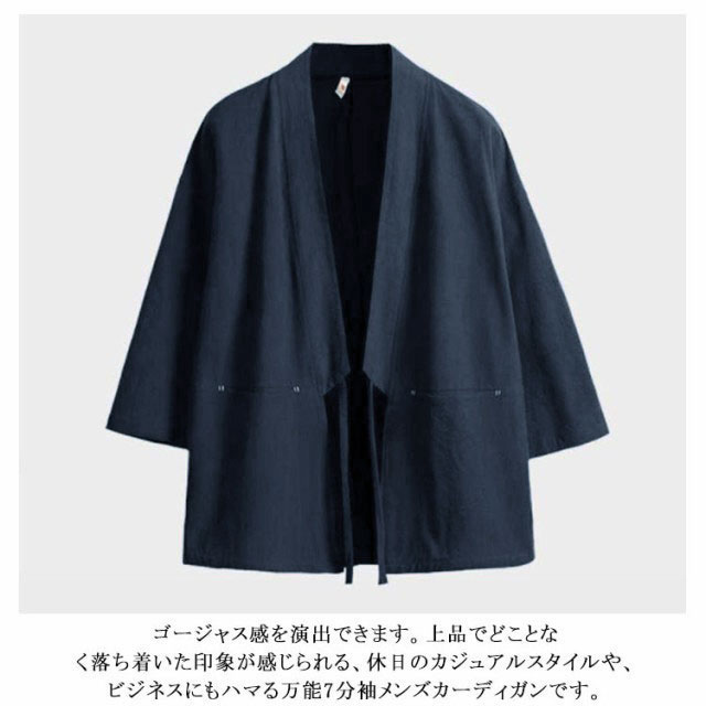 コットン素材を使用して、ストレスのない心地良い肌触り。柔らかいの薄手の生地で夏に欠かせない一品。爽やかな清涼感あふれる印象のコーデにプラスします。シンプルなデザインなのでどんなコーデにも合わせ易く、Tシャツやパンツと組み合わせるのがおすすめです。春夏秋冬も使える。春秋にちょうど良く1枚でもレイヤードしても快適に楽しめます。夏でも、クーラーの効きすぎた部屋での温度調節の羽織としてもOK。ゴージャス感を演出できます。上品でどことなく落ち着いた印象が感じられる、休日のカジュアルスタイルや、ビジネスにもハマる万能7分袖メンズカーディガンです。絶妙丈である7分袖デザインは、スタイルをバランス良くまとめるポイントに!一手間ウォッシュをかけたナチュラルな生地の風合いも堪りません。