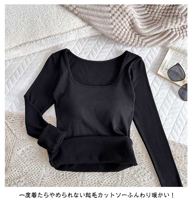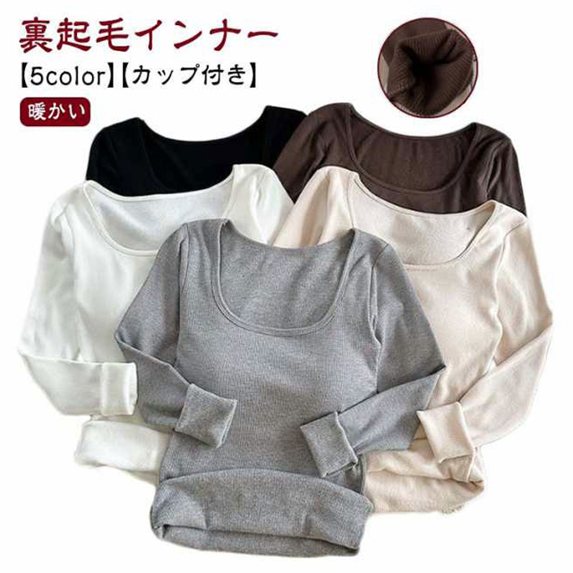 【カップ付き】【裏起毛インナー】【5color】一度着たらやめられない起毛カットソーふんわり暖かい!薄着でありながら暖かさを維持してくれるので、すっきりとしたファッションを楽しむことができます。寒い季節を快適にする究極のあったかカットソー感覚で使えるヒートテック。一枚で二役 !冬の寒さ対策に重宝します。