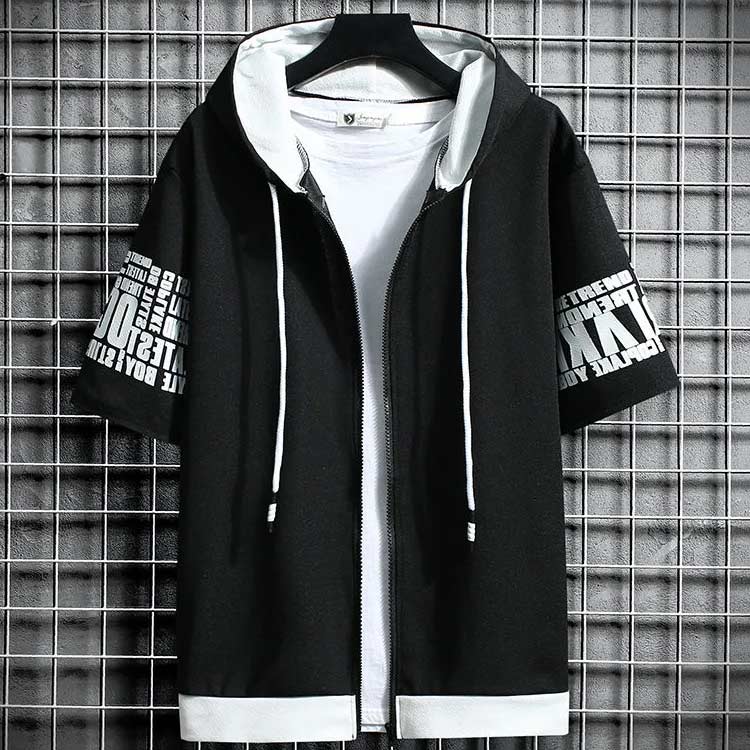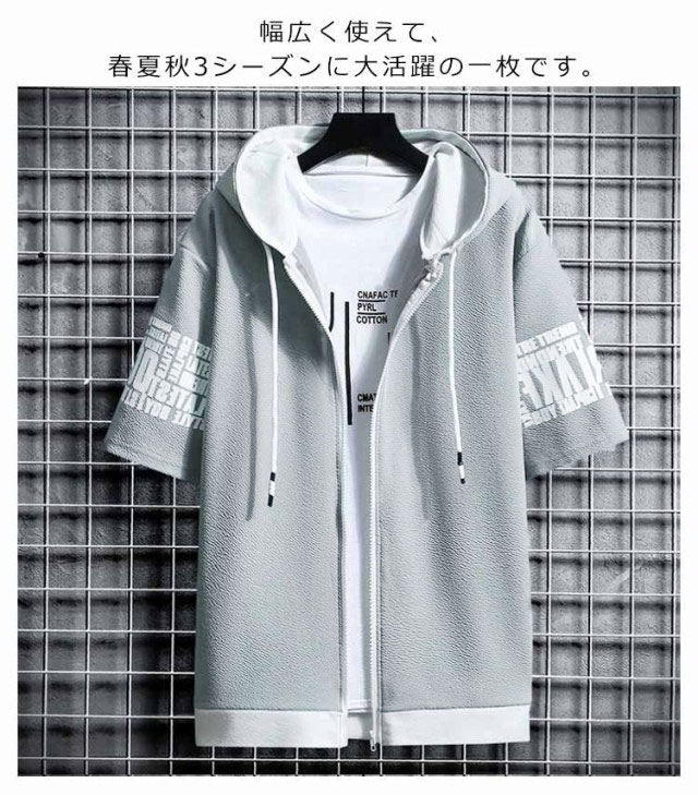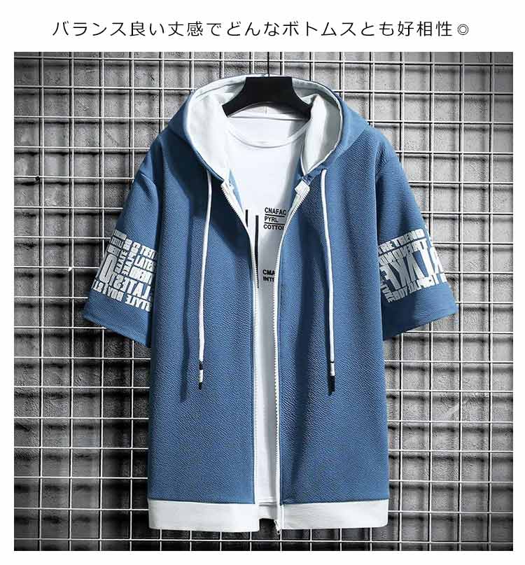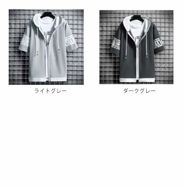 ジップアップ メンズ トップス 大きサイズ 半袖パーカー プリント 部屋着 夏 フード付き 切り替え 春物 運動着 パーカ ルームウェア スポーツウェア メンズファッション 春服 長袖 夏服 夏物 秋服 秋物 半袖 体型カバー ゆったり 大きいサイズ 送料無料