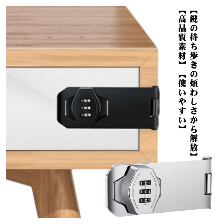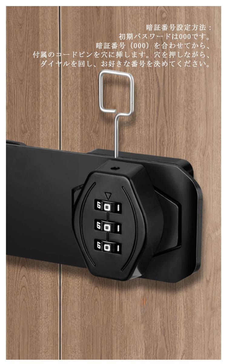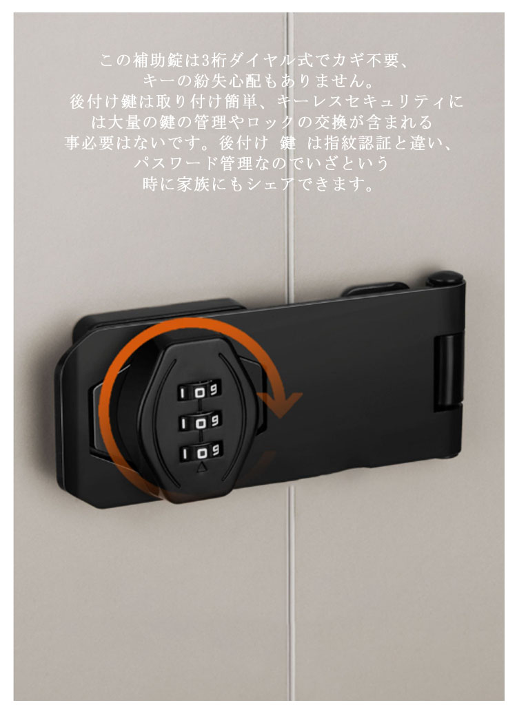 穴あけ不要 鍵 ドアロック 部屋鍵後付け 3桁ダイヤル式 鍵 落とし防止 引き戸 鍵 後付け 鍵 部屋 引き出し 鍵キャビネット ロッカー ポスト 収納ボックス 書庫 家具 扉 錠 ロック 防犯 耐震ラッチ 亜鉛合金製 金具 防錆 耐久性 かぎ 補助錠 玄関 窓 鍵 南京錠
