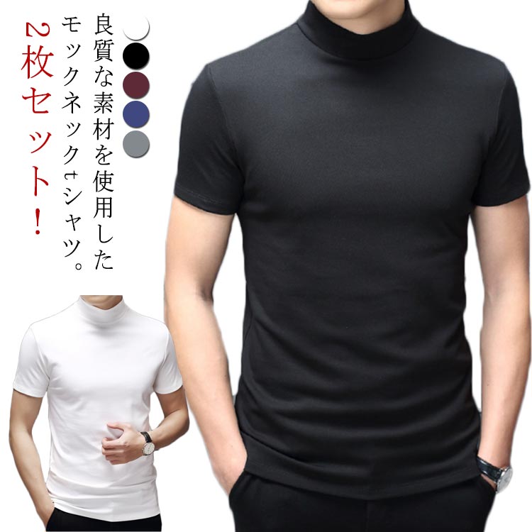 良質な素材を使用したモックネックtシャツ。2枚セット!シンプル無地のカジュアルデザイン♪着回ししやすいメンズ用Tシャツです。肌触りが柔らかく着心地がいいので、春夏でも爽やかに着られます。