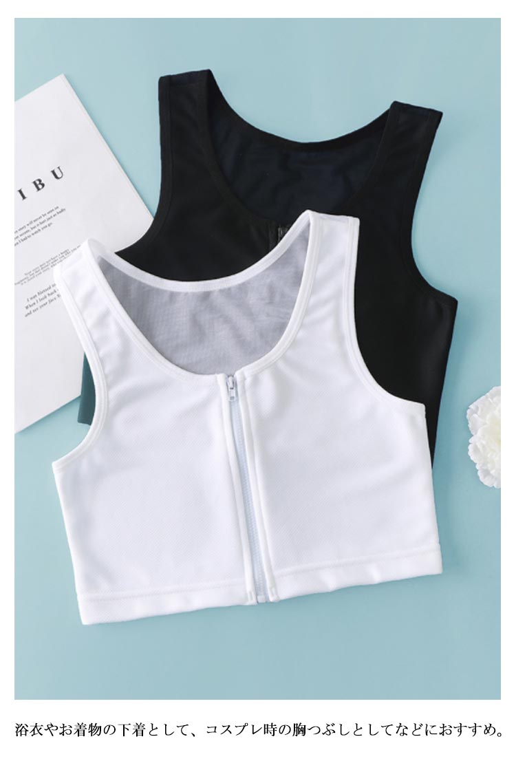 【2枚セット】【ファスナー式】【胸つぶし・インナー】【M-3XL】浴衣やお着物の下着として、コスプレ時の胸つぶしとしてなどにおすすめ。肩紐が広めのタンクトップタイプなので、スポーツ時にもぴったりです。ファスナー式で着脱しやすく、お急いでいる時にも便利。背中には通気性に優れたメッシュ素材を使用し、ムレをおさえ、快適な着心地です。胸を強力に抑えるので、スポーツ時の胸揺れ防止としても大活躍!
