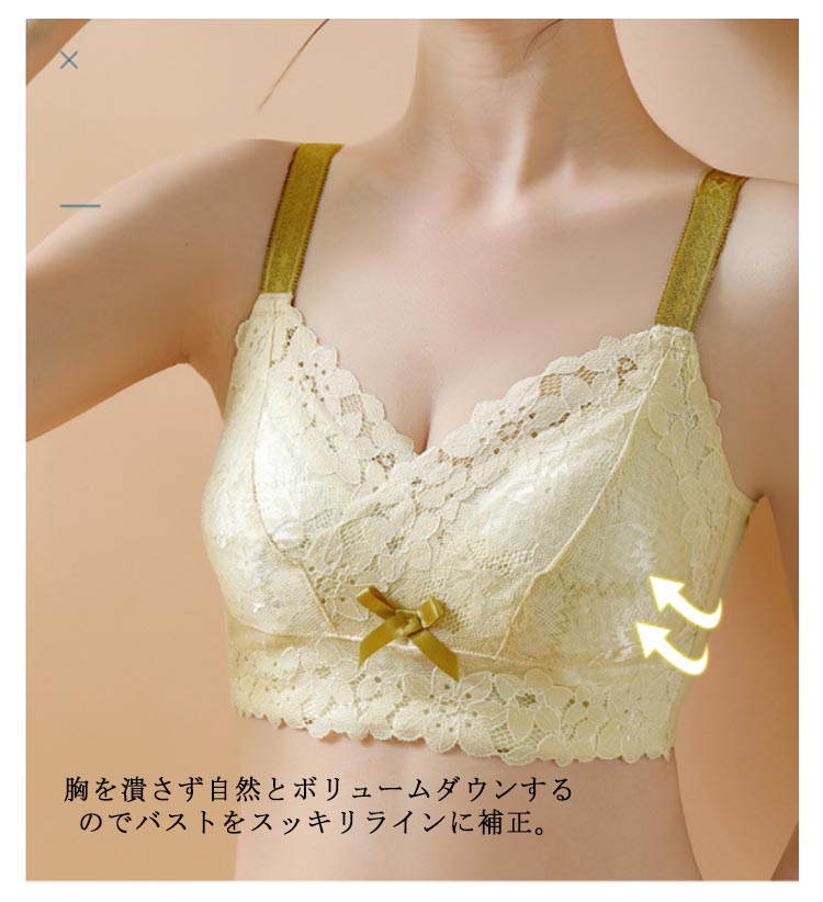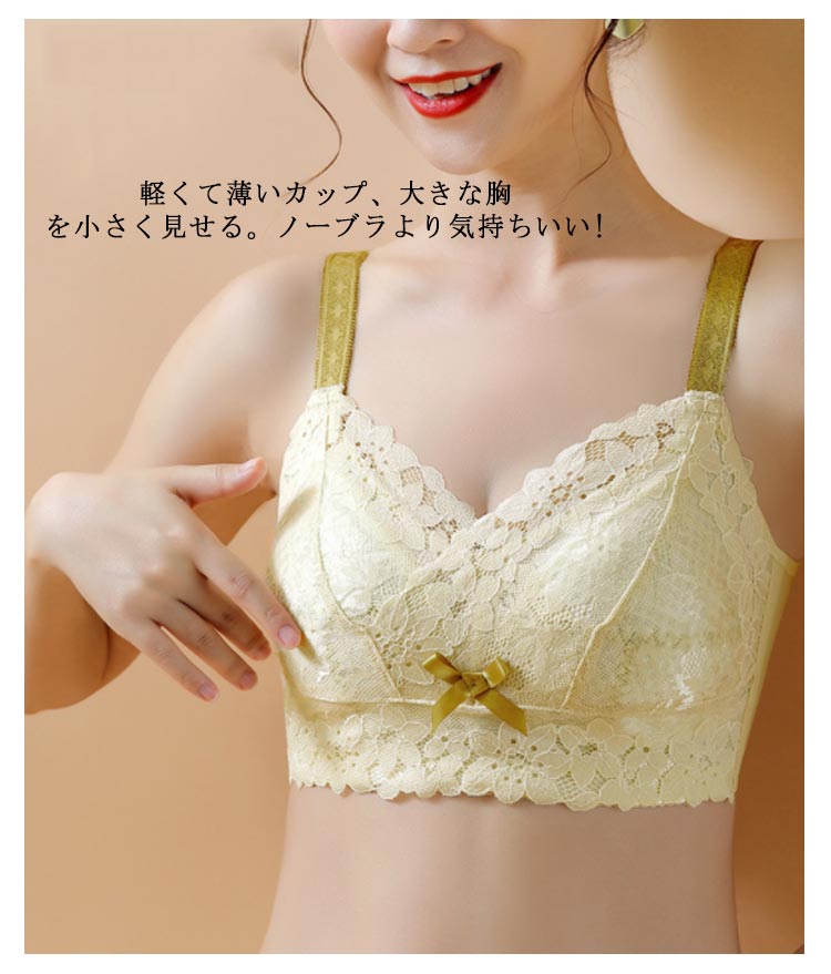 | 【ブラ+ショーツ?2点セット】【胸を小さく見せるブラ】【全4色?全15サイズ】 上品レースで大人可愛い 大きな胸を小さく見せるブラジャー。 ノンワイヤーで嫌な締め付けはなくストレスフリーな付け心地。 U字バックでバストをしっかり支え肩への負担も軽減します。 幅広ストラップでしっかりフィットし食い込みを防止。 軽くて薄いカップ、大きな胸を小さく見せる。ノーブラより気持ちいい! 胸を潰さず自然とボリュームダウンするのでバストをスッキリラインに補正。 ブラ全体が伸縮性高いの柔らかい素材を使用して、締め付けず、肌や肩への負担がない、フィット感が抜群です。 通気性高いの生地のため、長時間着ても蒸れず、一日中快適! | |
