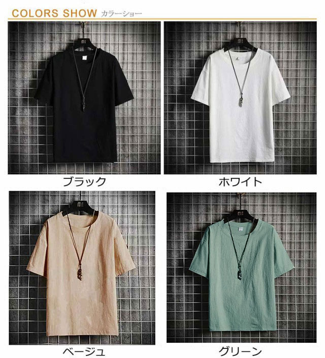 | 全6色×7サイズ! 素朴な風合いを持つ生地真夏の暑さの中でも快適に着こなせるリネンtシャツ | |