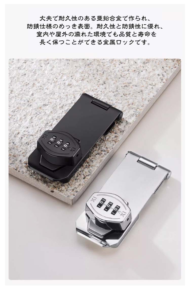 送料無料 引き戸 鍵 後付け 穴あけ不要 鍵 ドアロック 部屋鍵 後付け 3桁ダイヤル式 鍵 落とし防止 部屋 鍵 引き出しロック 鍵キャビネット ロッカー ポスト 収納ボックス 書庫 など 家具 扉 錠 ロック 防犯 耐震ラッチ 亜鉛合金製 金具 防錆 耐久性