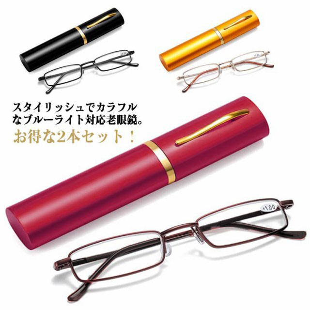 お得な2本セット!老眼鏡 リーディンググラス おしゃれ レディース メンズ 超軽量 コンパクト 老眼鏡 薄型&軽量 PCメガネ 超軽量TR/収納ケース付き ペン型 ポータブル シニアグラス 老眼メガネ 軽量 スリム コンパクト 敬老の日 父の日 母の日 ギフト 誕生日 プレゼント