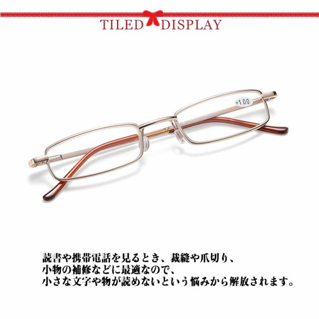 | 読書や携帯電話を見るとき、裁縫や爪切り、小物の補修などに最適なので、小さな文字や物が読めないという悩みから解放されます。 スタイリッシュでカラフルなブルーライト対応老眼鏡。 パソコン?スマホから発光される目に有害なブルーライトをしっかりカット。 レディース、メンズ、シニア幅広く愛用いただけます。 非常に軽く、鼻や耳に負担をかけません。 母の日、父の日、ご家族やご友人へのプレゼントに最適です。 | |