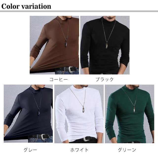 | M L XL 2XL 3XL 4XL よく伸びる素材! 両面起毛の暖かい肌着。 スポーツにも使えるハイネック仕様。 伸びの良いストレッチ素材は、動きやすいです。 | |