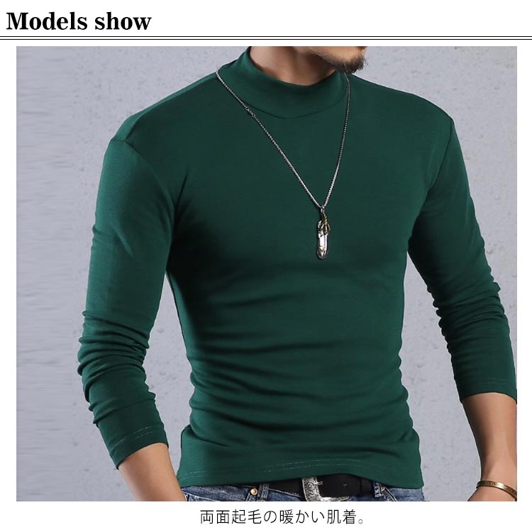 M L XL 2XL 3XL 4XLよく伸びる素材!両面起毛の暖かい肌着。スポーツにも使えるハイネック仕様。伸びの良いストレッチ素材は、動きやすいです。