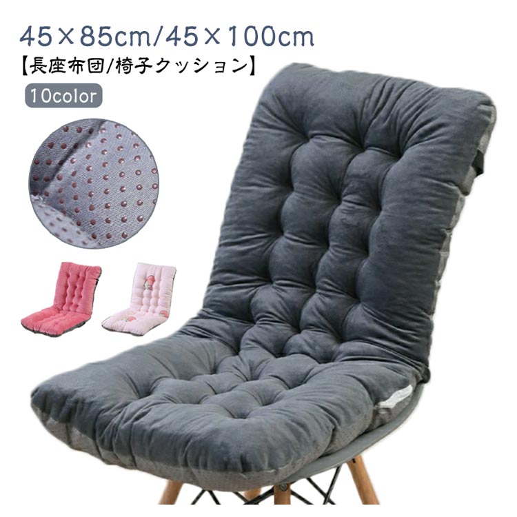 【長座布団/椅子クッション】【45×85cm/45×100cm】【10color】椅子用はもちろん、ベンチ用の長座布団としても使用できます。軽量でクッション性の高いPP綿がたっぶり詰まっているので座り心地抜群!腰や背中まわりを温かく包み込むことで、冷えにくく長時間座っている方にもおすすめ!痛くなるお尻や腰の悩みを解消してくれます。2か所の背面固定バンドと固定紐があるので、椅子に取り付けてもずれずに使用できます。自分に使うのはもちろん、父の日や母の日のギフトとしても喜ばれます!