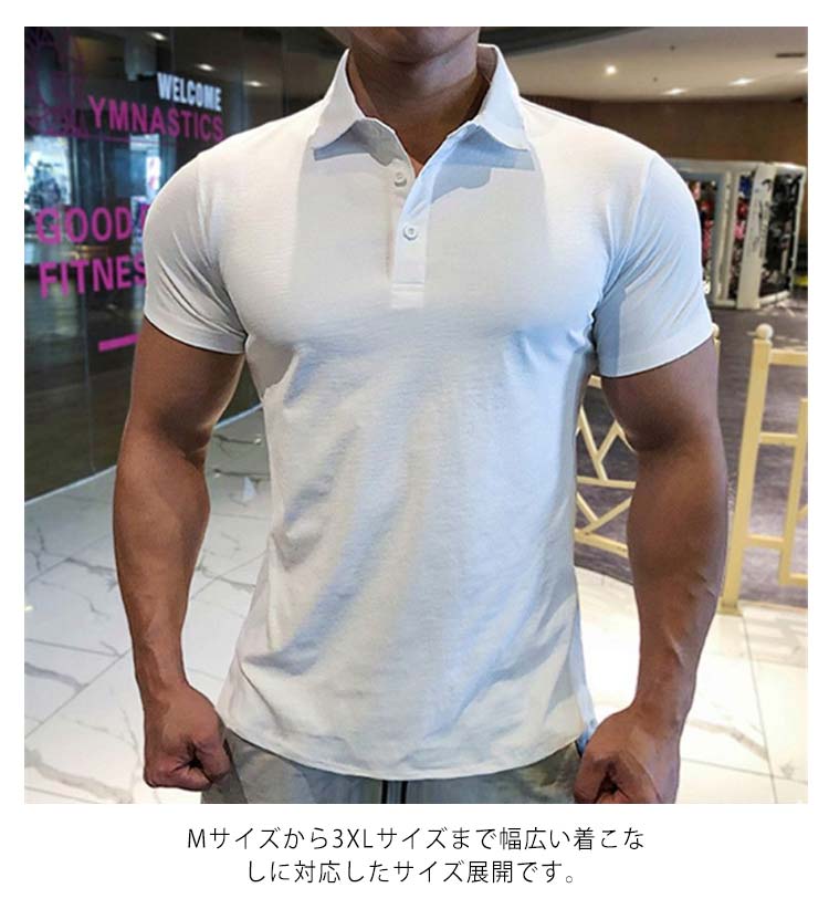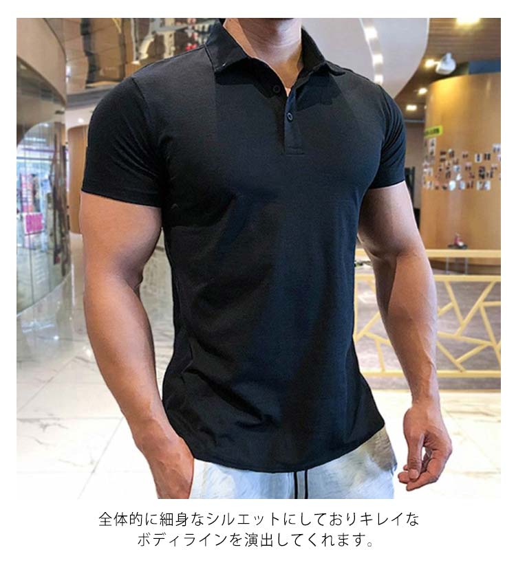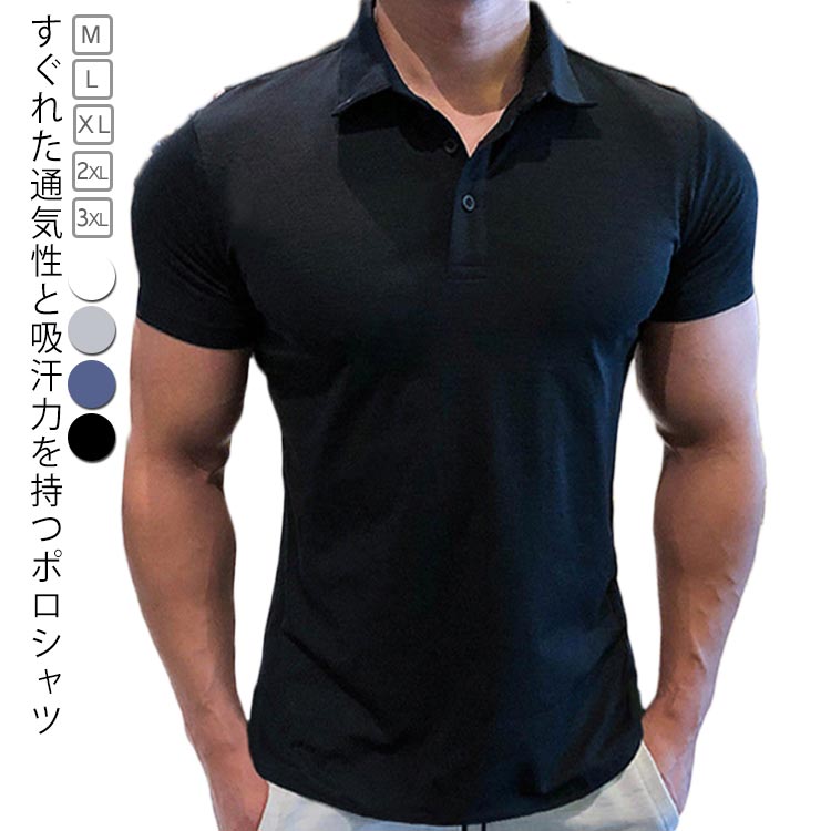 ポロシャツ メンズ 半袖 春夏 スリム ひんやり 薄手 速乾 ボタンダウン ストレッチ ゴルフ スポーツ 吸水 カジュアルシャツ 紳士 スポーツ 半袖ポロ 半袖 タイト 細身 シャツ かっこいい お兄系 無地 シンプル トレニンーグ ジム 送料無料 大きいサイズ