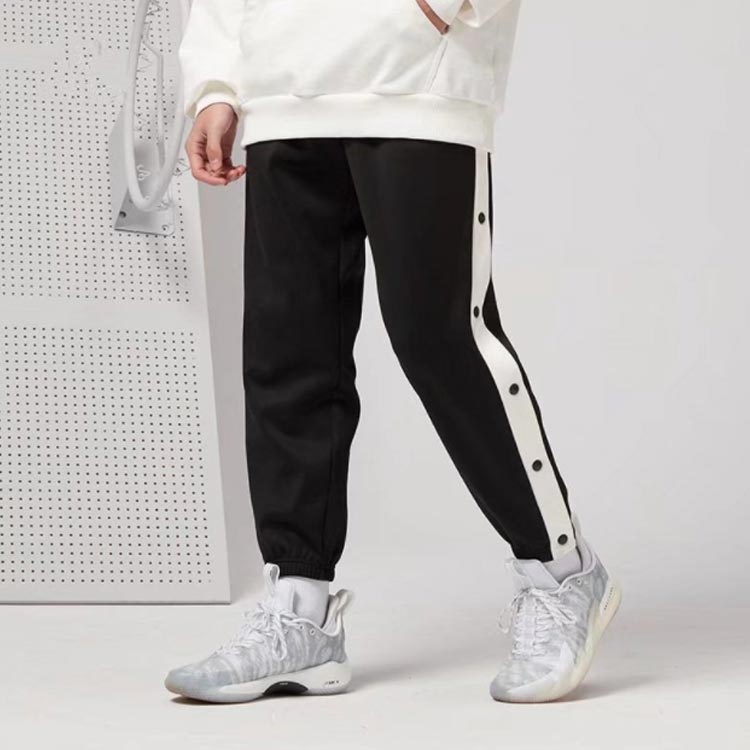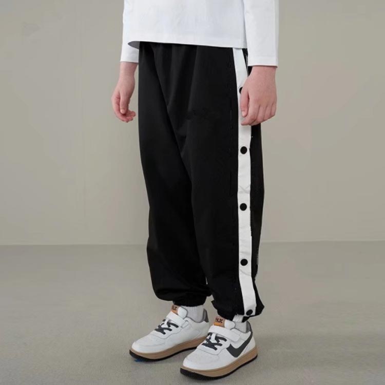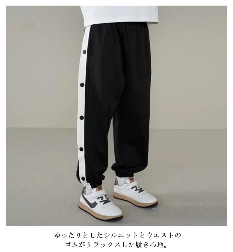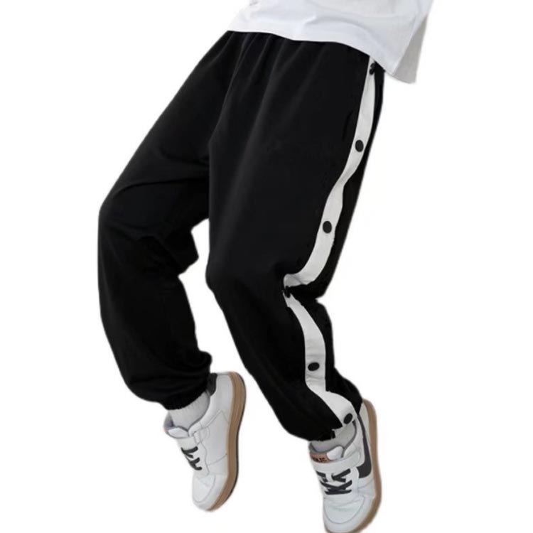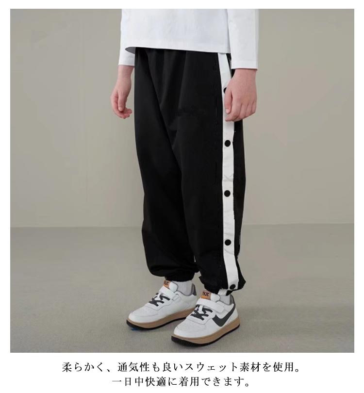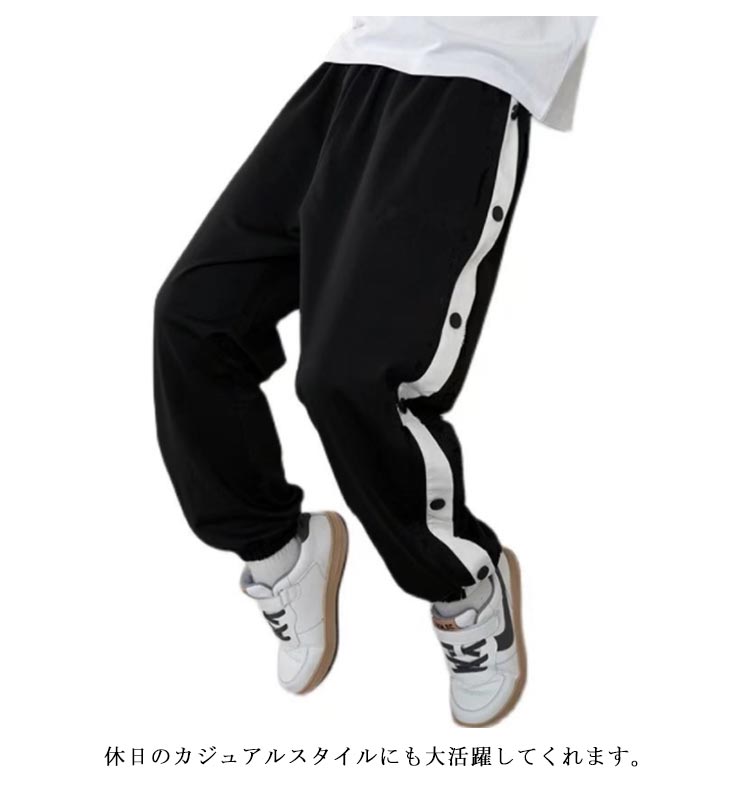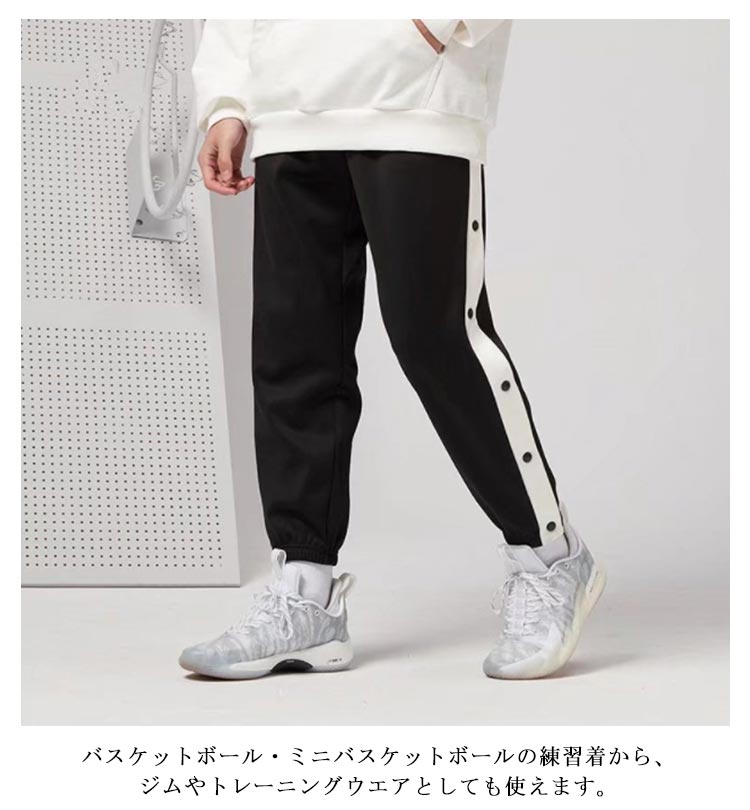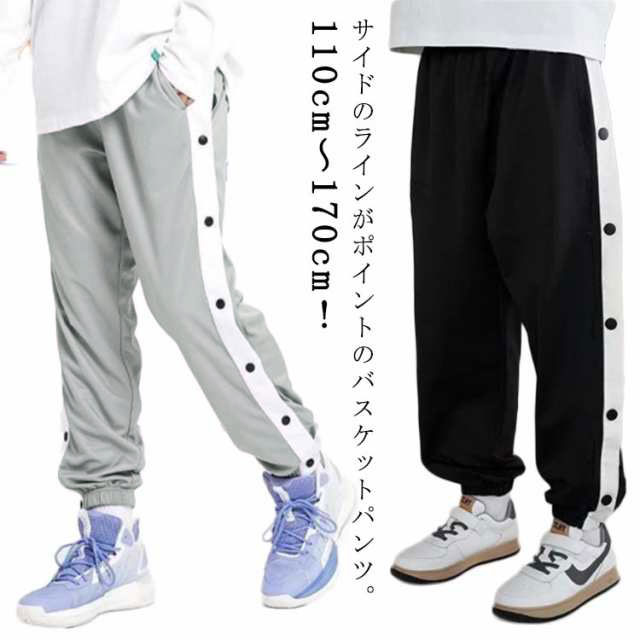 バスケットボールパンツ キッズ ジュニア 男の子 女の子 バスケットパンツ スナップボタン 裾ボタン サイドボタン サイドライン 春 夏 秋 冬 長ズボン ロングパンツ ジャージ 下 バスパン バスケパンツ スポーツウェア トレーニングウエア 110-170cm