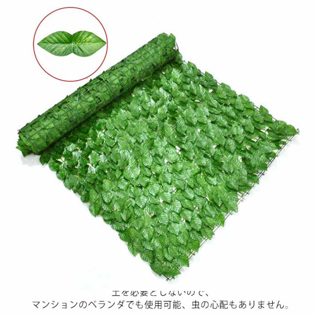 | 選べる7色 0.5m×3m 1m×1m 1m×2m 1m×3m お洒落でECOな目隠しになるグリーンフェンス。 UVカットで機能性&デザイン性抜群。 土を必要としないので、マンションのベランダでも使用可能、虫の心配もありません。 庭のフェンス、ベランダのフェンス、駐車場のフェンス、外壁、他、サンシェードとしてもご使用いただけます。 | |