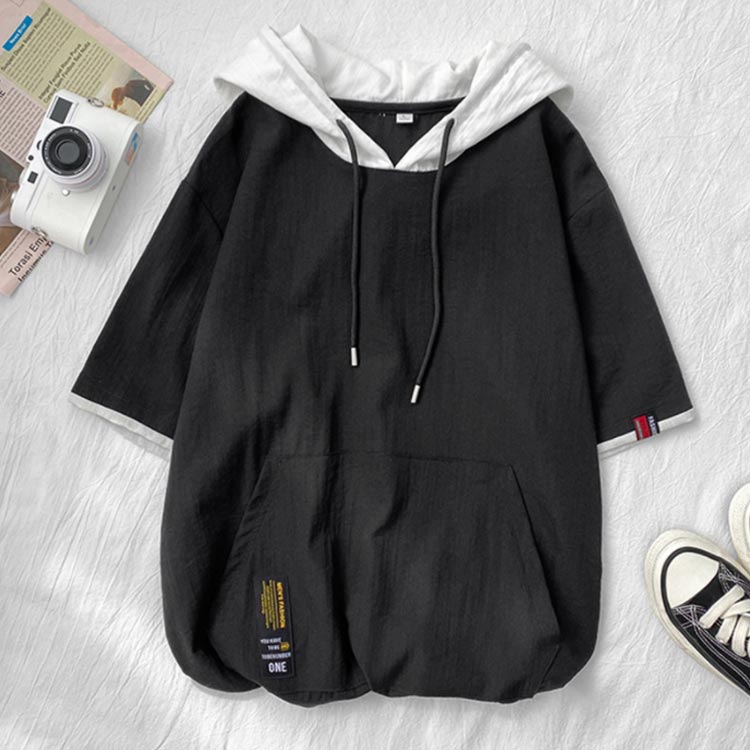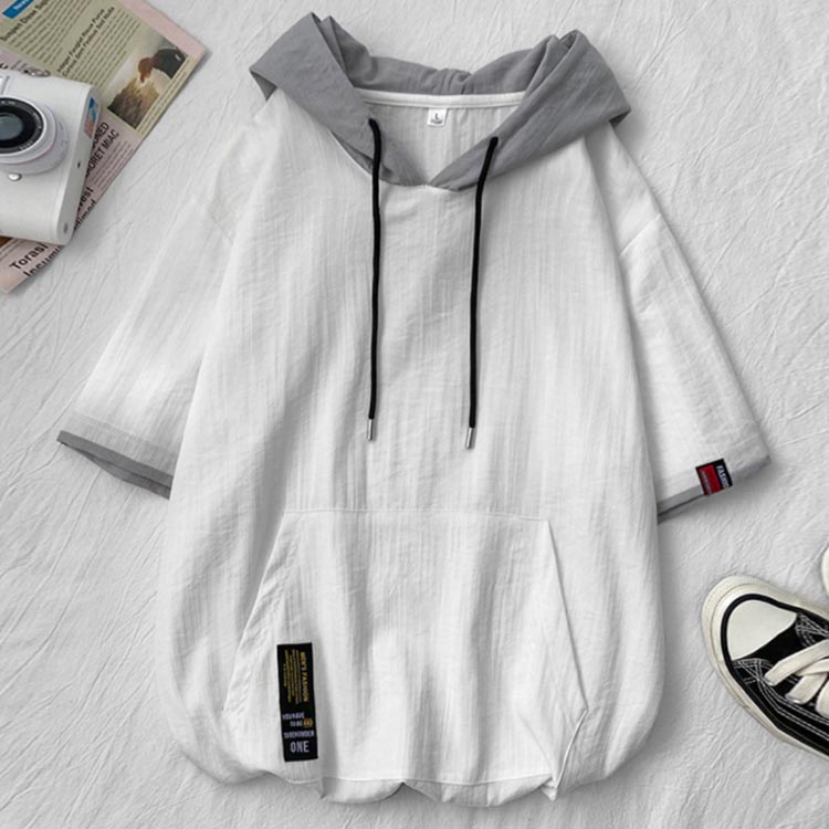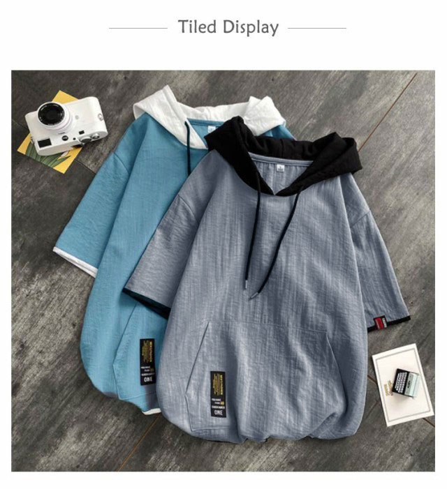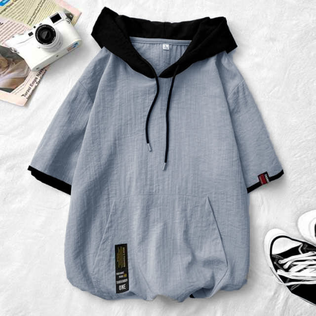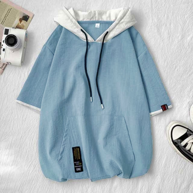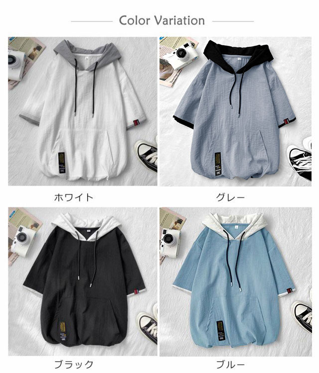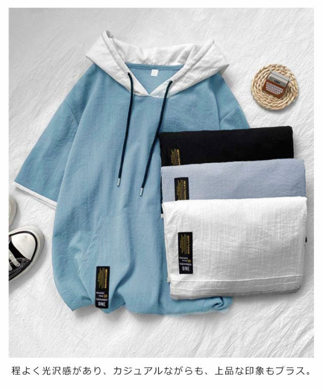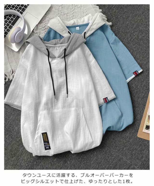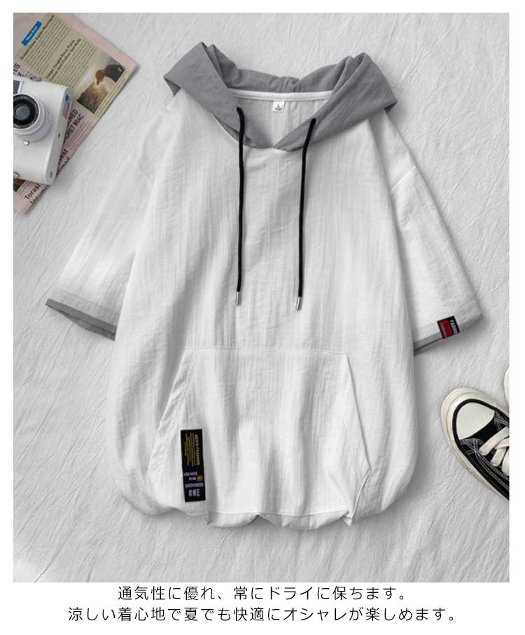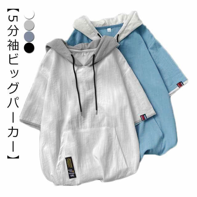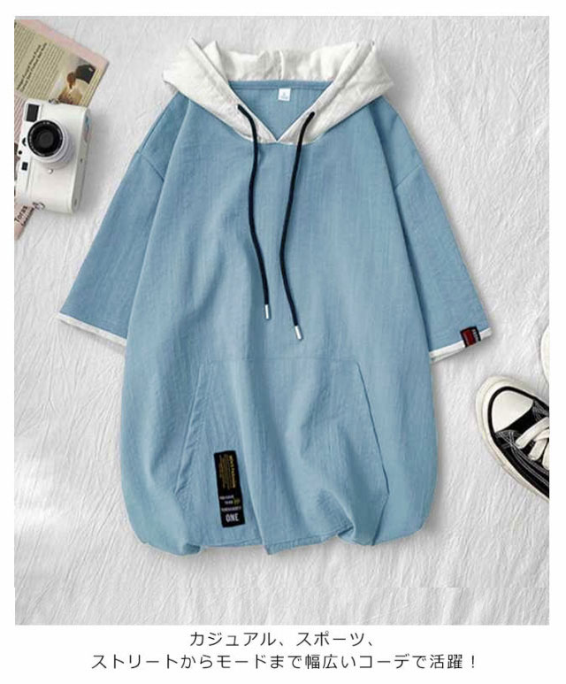 パーカー メンズ 薄手 夏 半袖パーカー フード付きtシャツ 大きいサイズ パーカーシンプル 部屋着 夏用 ルームウェア 韓国 ファッション 夏服 春夏 メンズファッション プルオーバーパーカー 切り替え トップス 5分袖 カジュアル 送料無料
