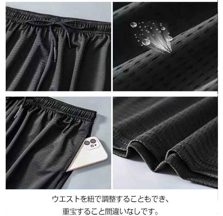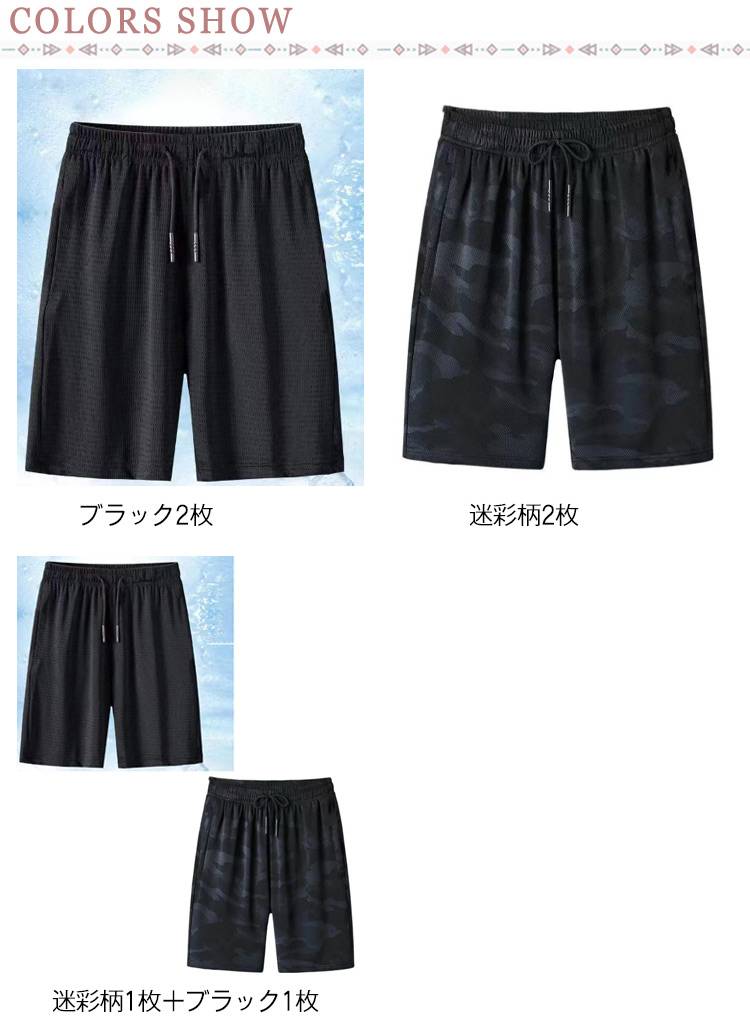 【2枚セット】 ハーフパンツ メンズ 接触冷感 吸水速乾 半ズボン ショートパンツ 5分丈 夏 涼しい 涼感 メッシュ ドライ 通気性 ゆったり 大きいサイズ ストレッチ ウエストゴム 無地 スポーツウェア 普段着 アウトドア 夏服 送料無料