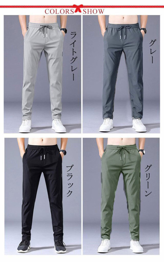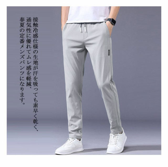 冷感パンツ メンズ チノパン 接触冷感 アイスシルクパンツ ひんやり 涼しい ロングパンツ イージーパンツ 薄手 ゴルフパンツ ストレッチ 伸縮 通気 速乾 スポーツパンツ カジュアル 無地 大きいサイズ 夏 春 秋 クール感 uvカット 涼しい ゆったり 送料無料