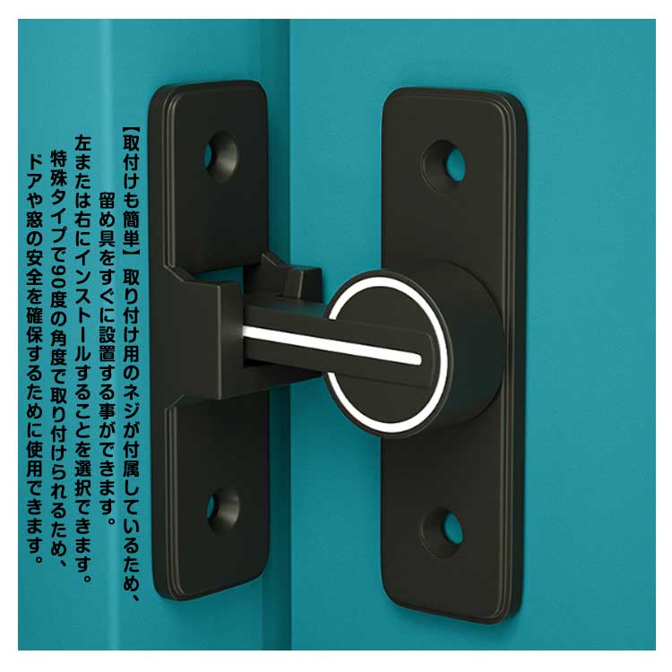引き戸 鍵 後付け ドアロック 90度/180度 取り付け簡単 穴あけ不要 ドアバックル 亜鉛合金 ドア留め金ロック 後付け 回転式 フリップラッチロック スライディングドア 引き戸 鍵 ロック 耐震ラッチ 防犯 部屋 窓 玄関用