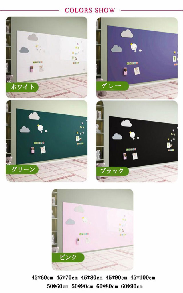 | 磁石がくっつくホワイトボードです。全9サイズ×全5カラー! 裏面に粘着剤がついて、別にテープなどの接着剤が不要と一人でも貼り付けます。 大判のホワイトボードシートで、ハサミ、カッターなどを使いとお好きなサイズ?形にカットできます。 壁、家具のサイズによってホワイトボードシートを自由に組合わせ、家族へのメッセージやメモ?リスト、ホワイトボードシートカレンダー、落書きなど使い方は様々! 【ご注意】使用時は表面のフィルムを剝がしてください。 | |