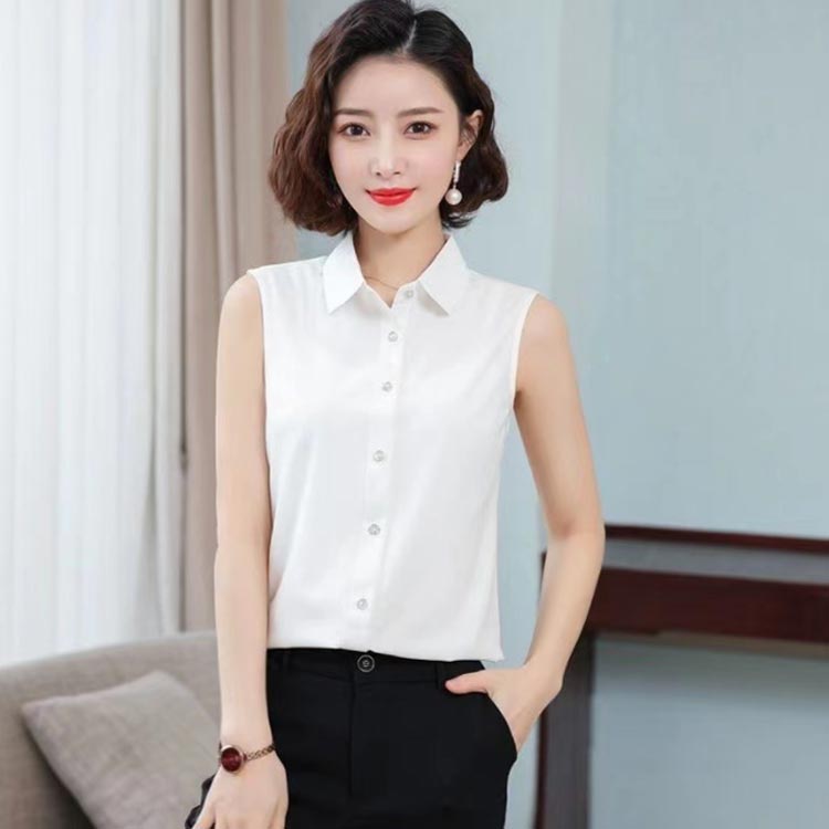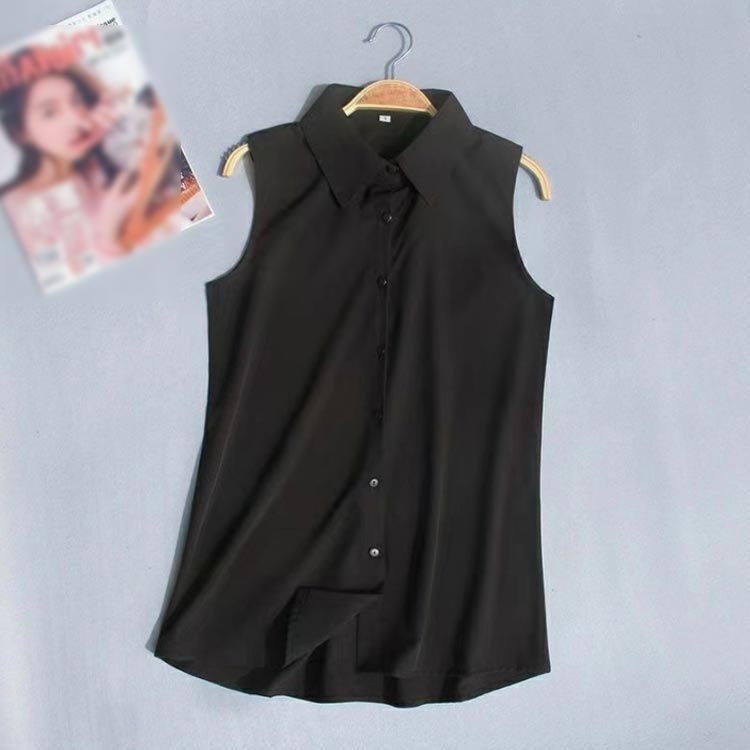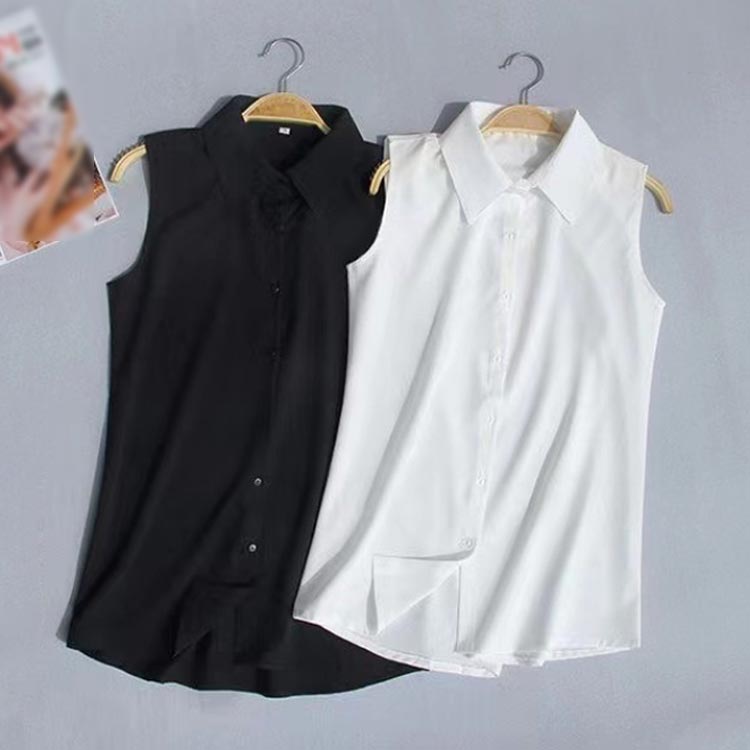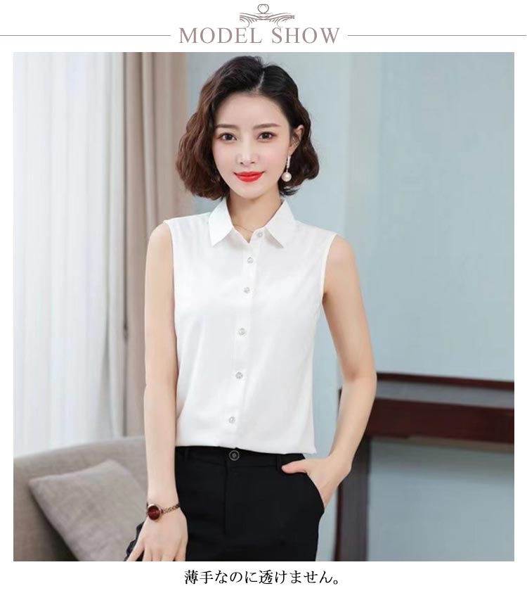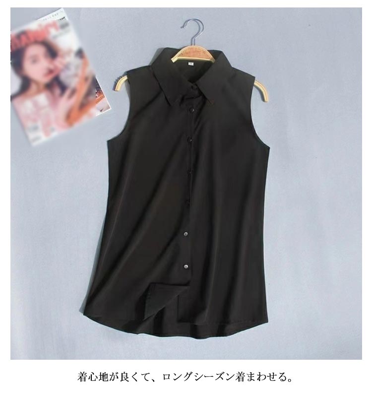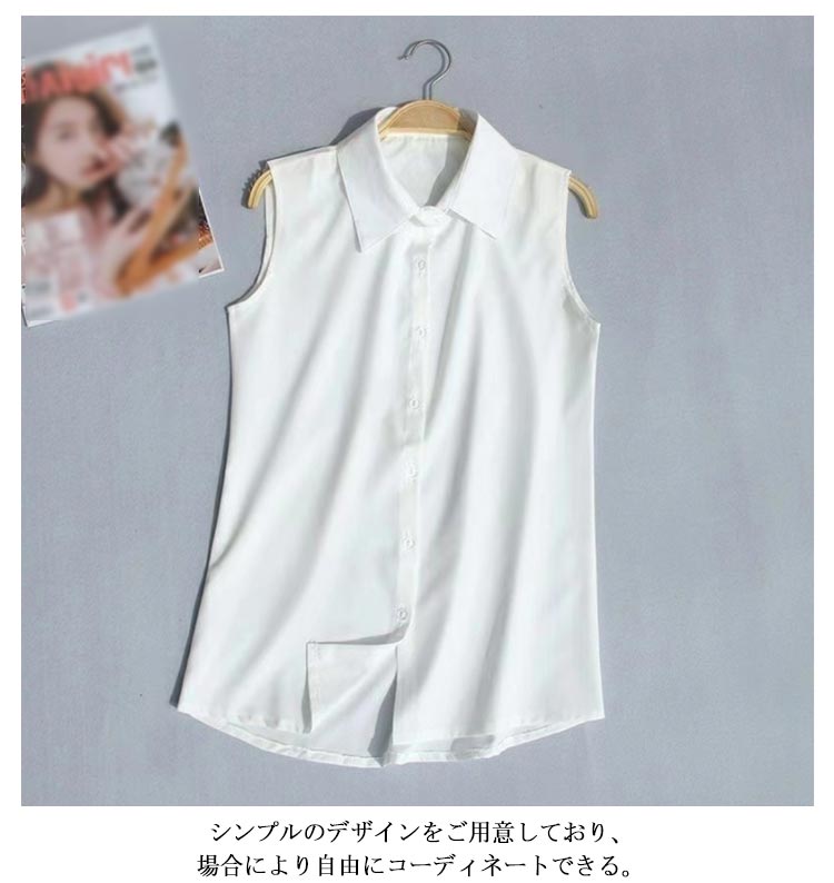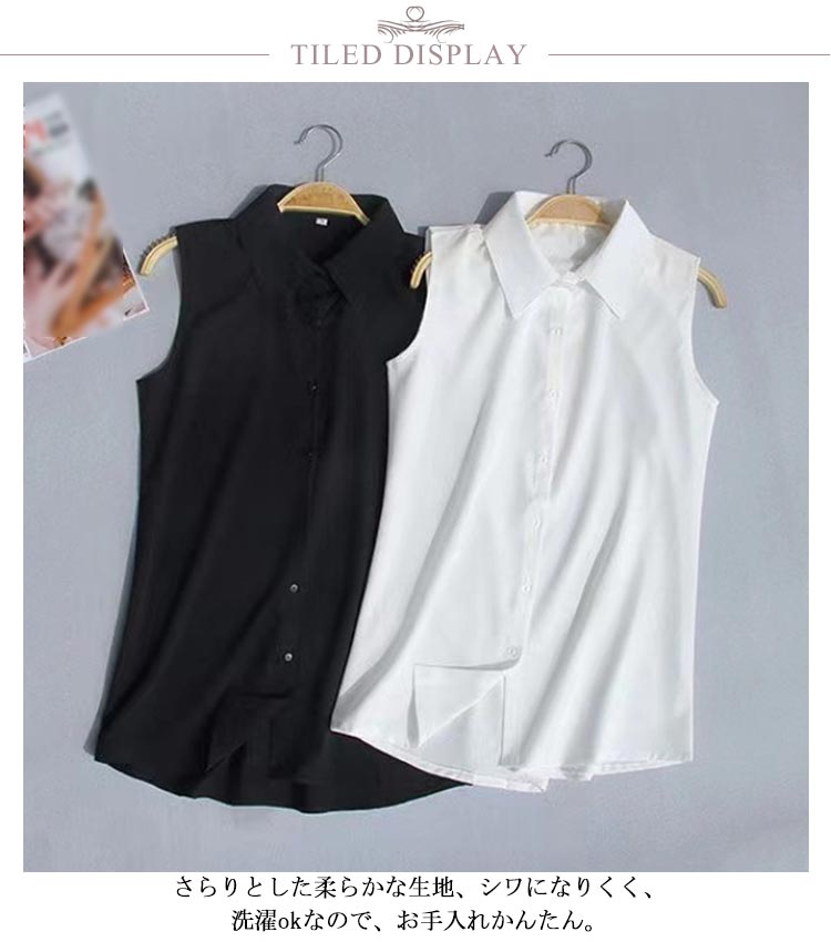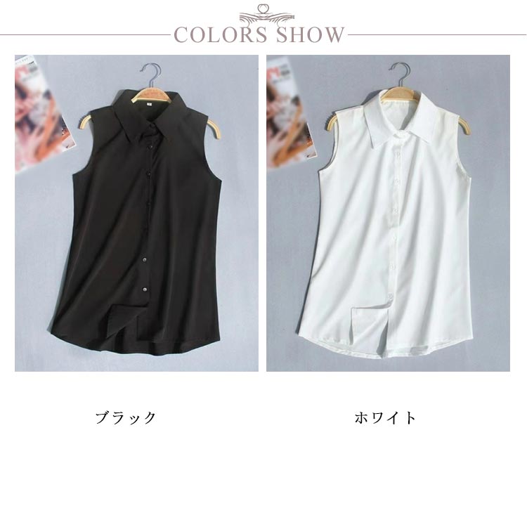 ノースリーブ シャツ 白 黒 レディース ブラウス 袖なし スリーブレス ワイシャツ レディース わいしゃつ スリム シンプル タンクトップ トップス 重ね着 レイヤード 襟付き シャツブラウス 白 黒 夏 薄手 スーツ インナー
