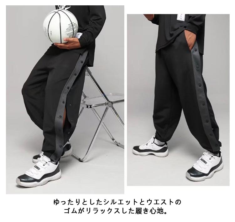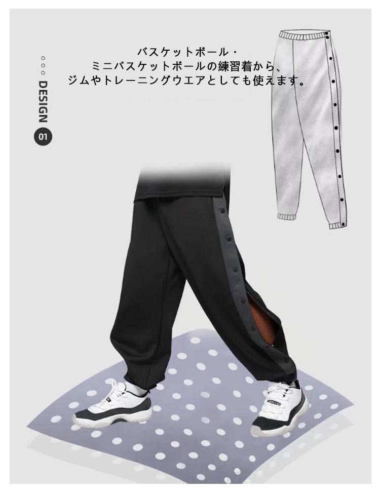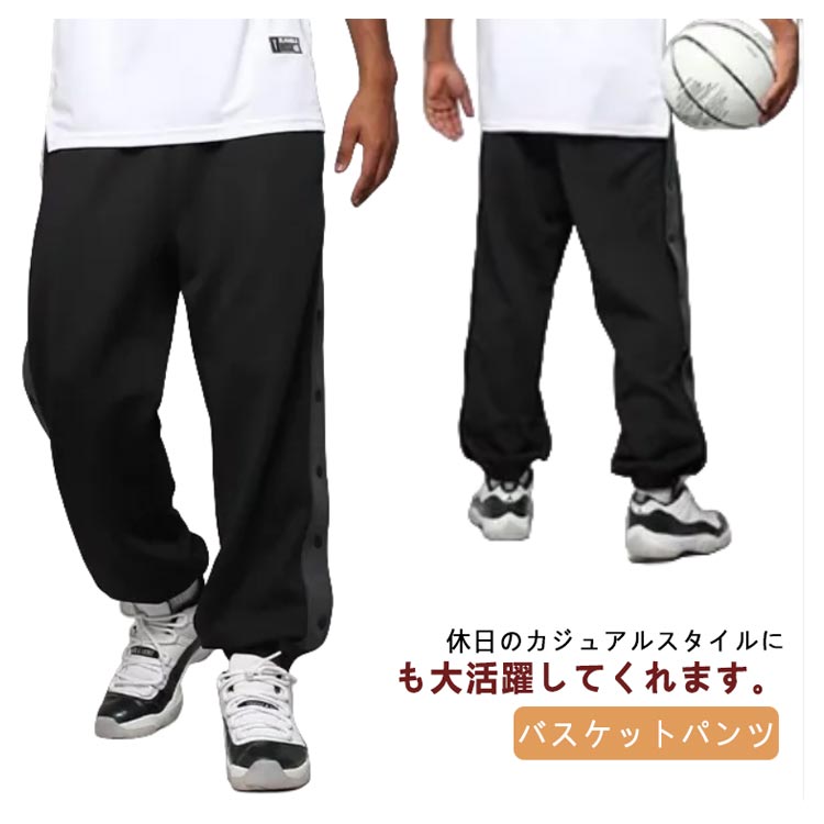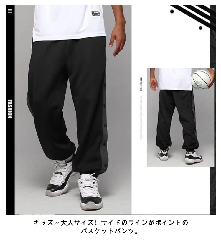 ジュニア 大人 バスケットパンツ スナップボタン バスケットボールパンツ キッズ 裾ボタン サイドボタン サイドライン 長ズボン ロングパンツ ジャージ 下 男の子 女の子 男性 女性 メンズ レディース バスパン バスケパンツ 送料無料 スポーツウェア トレーニングウエア